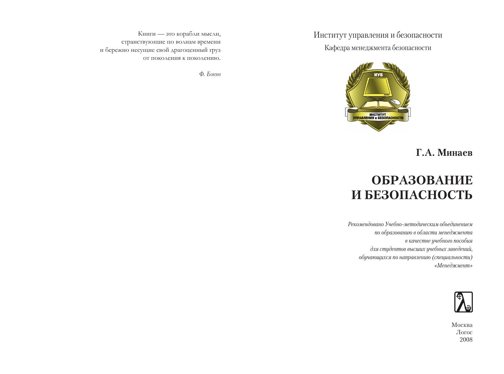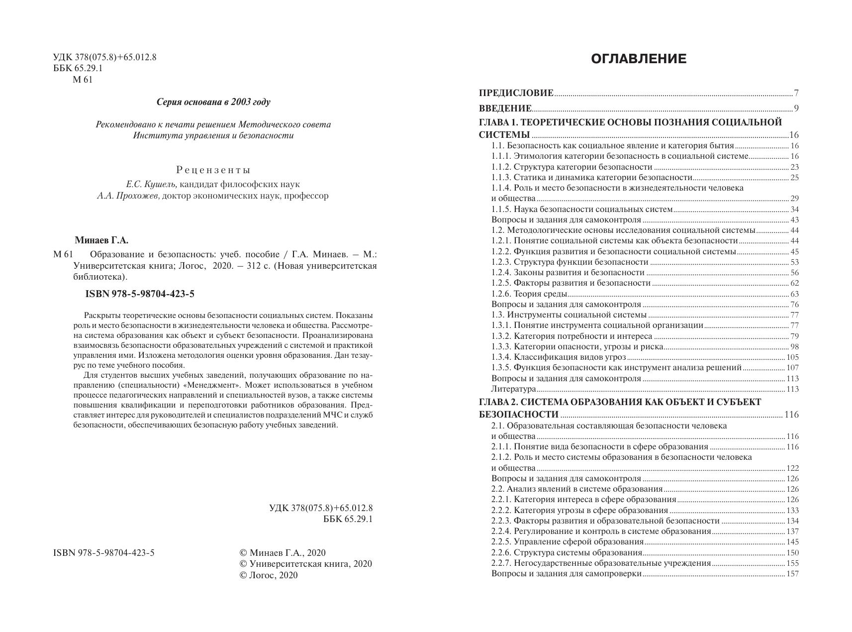 Раскрыты теоретические основы безопасности социальных систем. Показаны роль и место безопасности в жизнедеятельности человека и общества. Рассмотрена система образования как объект и субъект безопасности. Проанализирована взаимосвязь безопасности образовательных учреждений с системой и практикой управления ими. Изложена методология оценки уровня образования. Дан тезаурус по теме учебного пособия. Для студентов высших учебных заведений, получающих образование по направлению (специальности) «Менеджмент». Может использоваться в учебном процессе педагогических направлений и специальностей вузов, а также системы повышения квалификации и переподготовки работников образования. Представляет интерес для руководителей и специалистов подразделений МЧС и служб безопасности, обеспечивающих безопасную работу учебных заведений.