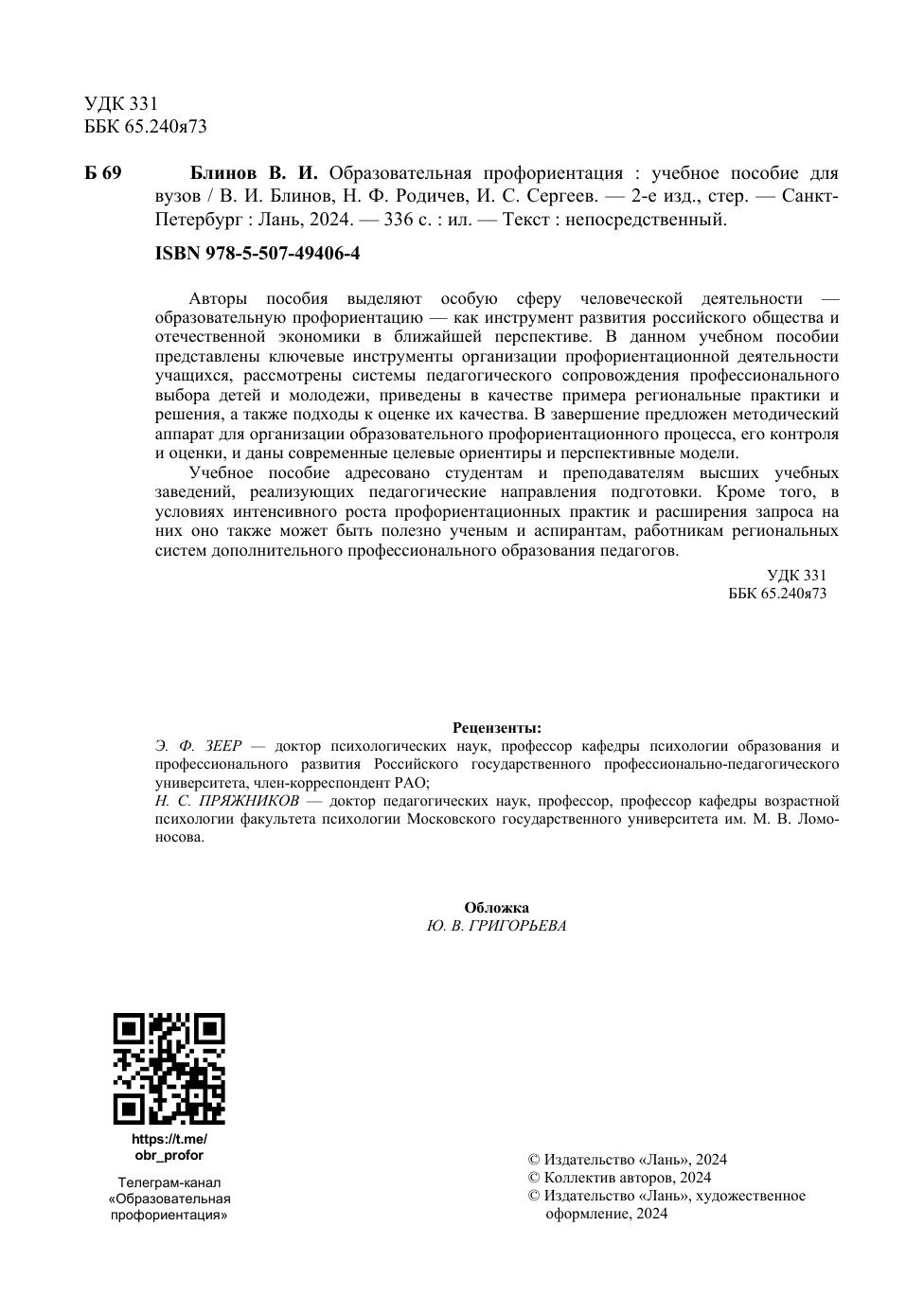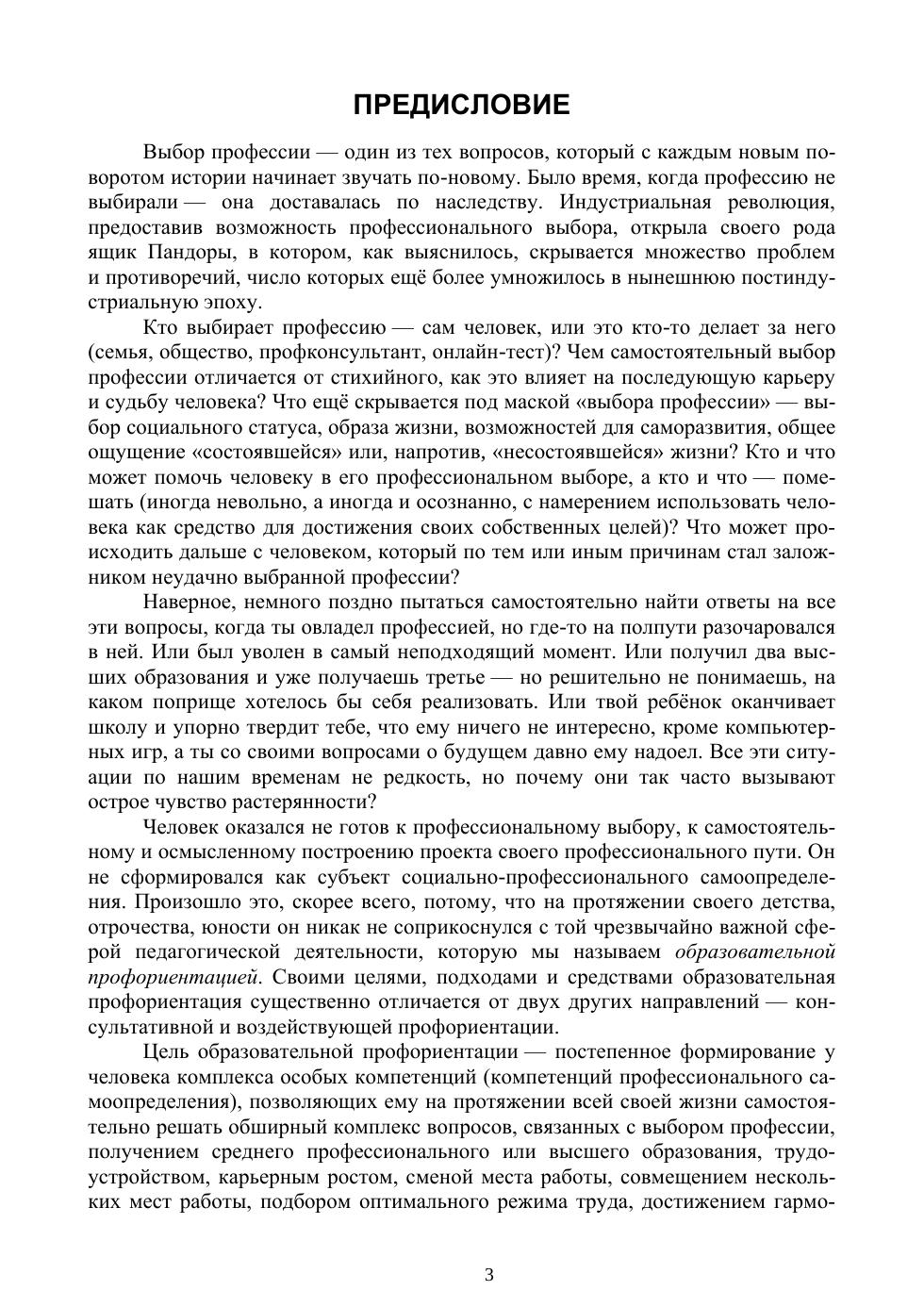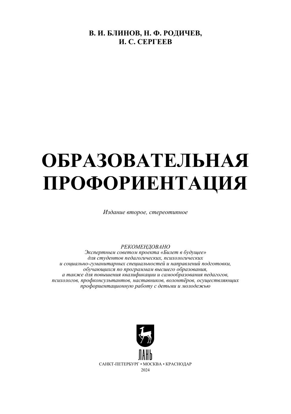 Авторы пособия выделяют особую сферу человеческой деятельности — образовательную профориентацию — как инструмент развития российского общества и отечественной экономики в ближайшей перспективе. В данном учебном пособии представлены ключевые инструменты организации профориентационной деятельности учащихся, рассмотрены системы педагогического сопровождения профессионального выбора детей и молодежи, приведены в качестве примера региональные практики и решения, а также подходы к оценке их качества. В завершение предложен методический аппарат для организации образовательного профориентационного процесса, его контроля и оценки, и даны современные целевые ориентиры и перспективные модели. Учебное пособие адресовано студентам и преподавателям высших учебных заведений, реализующих педагогические направления подготовки. Кроме того, в условиях интенсивного роста профориентационных практик и расширения запроса на них оно также может быть полезно ученым и аспирантам, работникам региональных систем дополнительного профессионального образования педагогов.