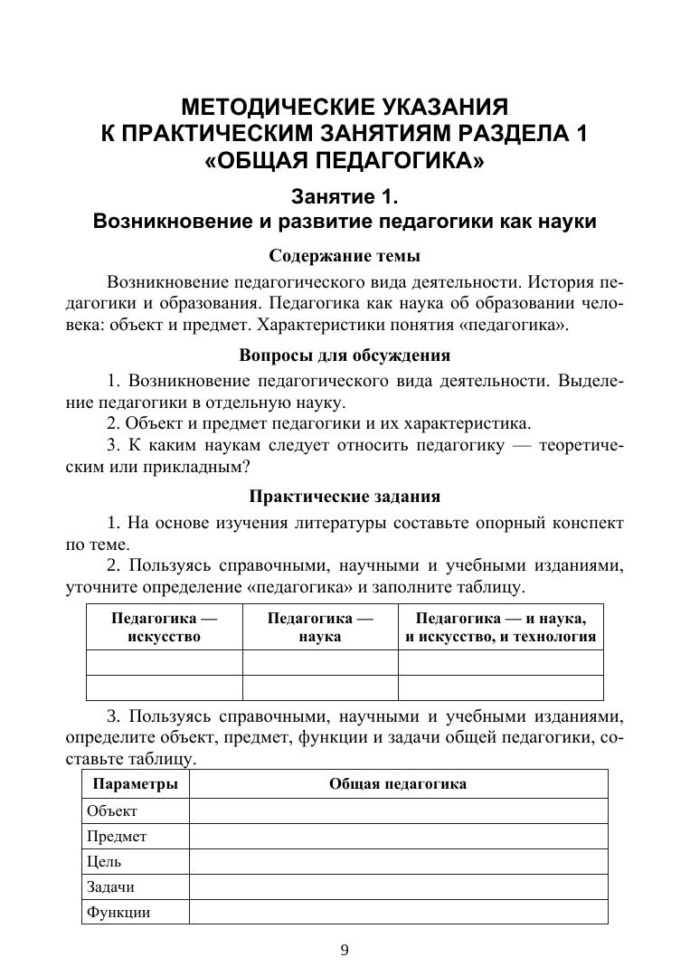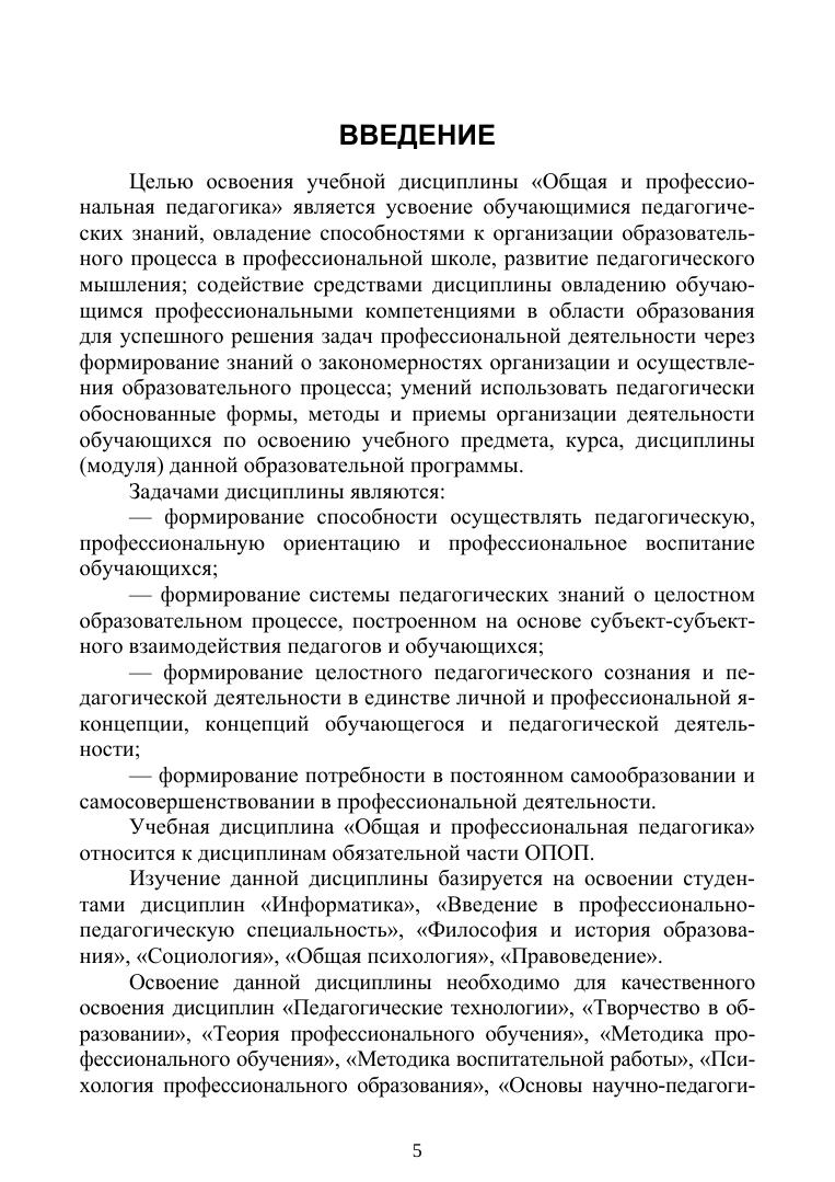 Учебное пособие написано в соответствии с программой курса «Общая и профессиональная педагогика». В нем представлены основные дидактические единицы, контрольные вопросы, практические и творческие задания для самостоятельной аудиторной и внеаудиторной работы по каждой теме курса. Сформулированы пояснения по вопросам практических занятий, приведены справочные материалы и списки рекомендуемой литературы. В начале каждого раздела дается методика выполнения заданий, поясняется характер действий при выполнении отдельной работы, форма и вид отчетности и т. д. Для проверки знаний приведены тестовые задания. Соответствует современным требованиям Федерального государственного образовательного стандарта среднего профессионального образования и профессиональным квалификационным требованиям. Пособие предназначено для студентов профессиональных образовательных организаций педагогических направлений подготовки, но может быть полезно преподавателям системы среднего и дополнительного профессионального образования, руководителям образовательных организаций и их подразделений, научным и практическим работникам образовательной сферы.