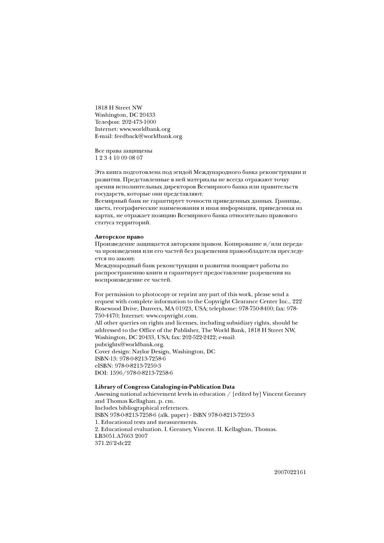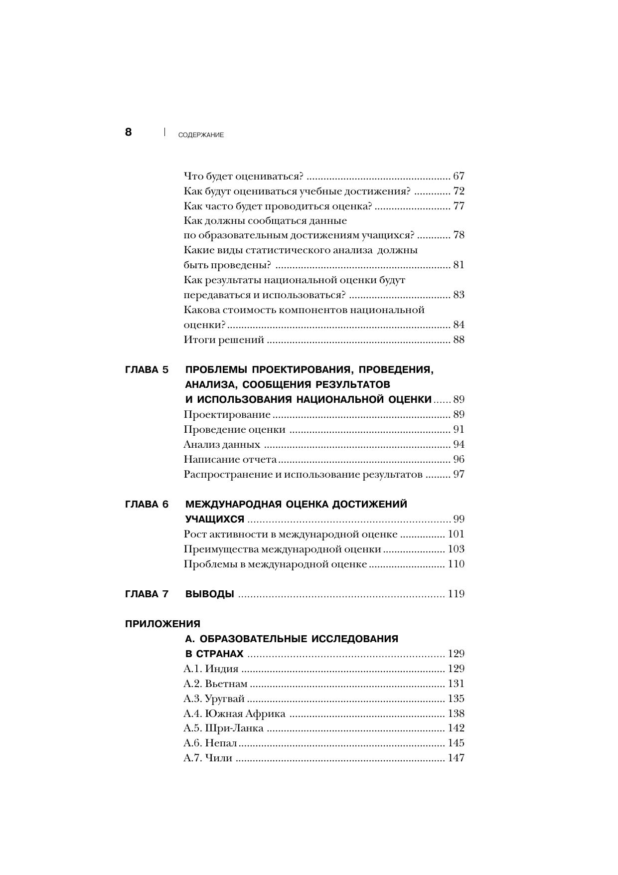 Освещены особенности национальной и международной оценки учебных достижений обучаемых в сфере образования. Дано обоснование национальной оценки достижений, раскрыты ее цели, методы, основные элементы и организация. Рассмотрены решения, которые принимаются в связи с национальной оценкой достижений в образовании. Показано, кто может принимать эти решения и как они должны проводиться в жизнь. Изложены вопросы дизайна, применения, анализа, отчетности и использования национальной системы оценки. Охарактеризованы особенности международного оценивания учебных достижений. Книга содержит приложения, где показаны примеры программ оценивания достижений в разных странах, а также международные и региональные примеры. Приведены аргументы, доказывающие, что перенос центра тяжести в сфере образования с обеспечения всеобщей доступности обучения на оценку его результатов является этапным шагом вперед в деле повышения эффективности образования в экономическом и социальном развитии, особенно в развивающихся странах. Для лиц, принимающих участие в разработке и реализации образовательной политики, руководителей и специалистов органов управления образованием и учебных заведений. Будет полезной специалистам и экспертам, принимающим участие в программах оценки качества образования. Может использоваться при подготовке и повышении квалификации педагогических кадров по тематике управления качеством образования и менеджмента в образовании. Представляет интерес для широкого круга учителей и преподавателей учебных заведений различных видов и уровней.