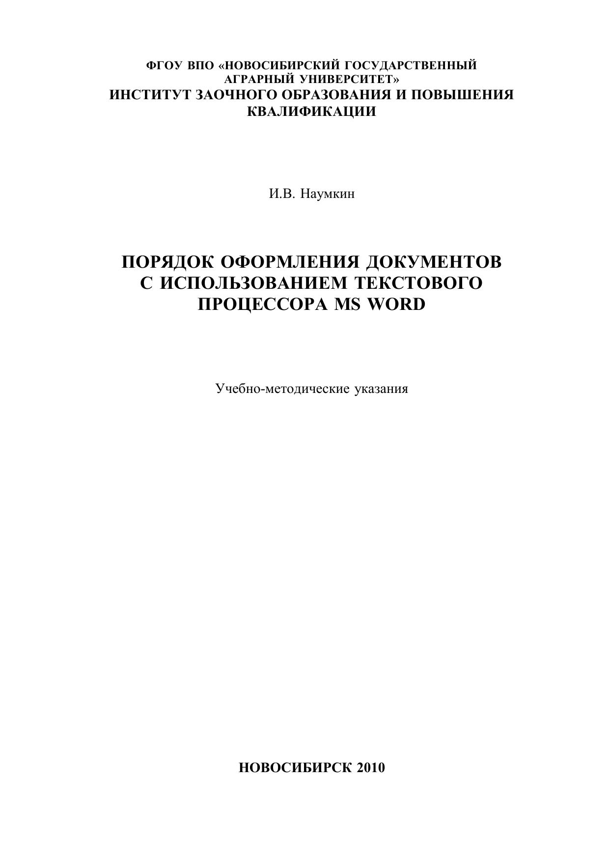 Порядок оформления документов с использованием текстового процессора MS WORD
