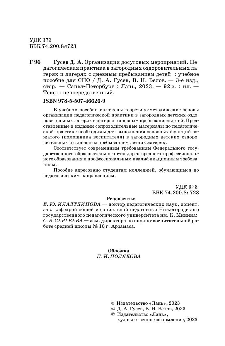 В учебном пособии изложены теоретико-методические основы организации педагогической практики в загородных детских оздоровительных лагерях и лагерях с дневным пребыванием детей. Представленные в издании сопроводительные материалы по педагогической практике необходимы для выполнения основных функций вожатого (помощника воспитателя) в загородных детских оздоровительных и с дневным пребыванием летних лагерях. Соответствует современным требованиям Федерального государственного образовательного стандарта среднего профессионального образования и профессиональным квалификационным требованиям. Пособие адресовано студентам колледжей, обучающихся по педагогическим направлениям.