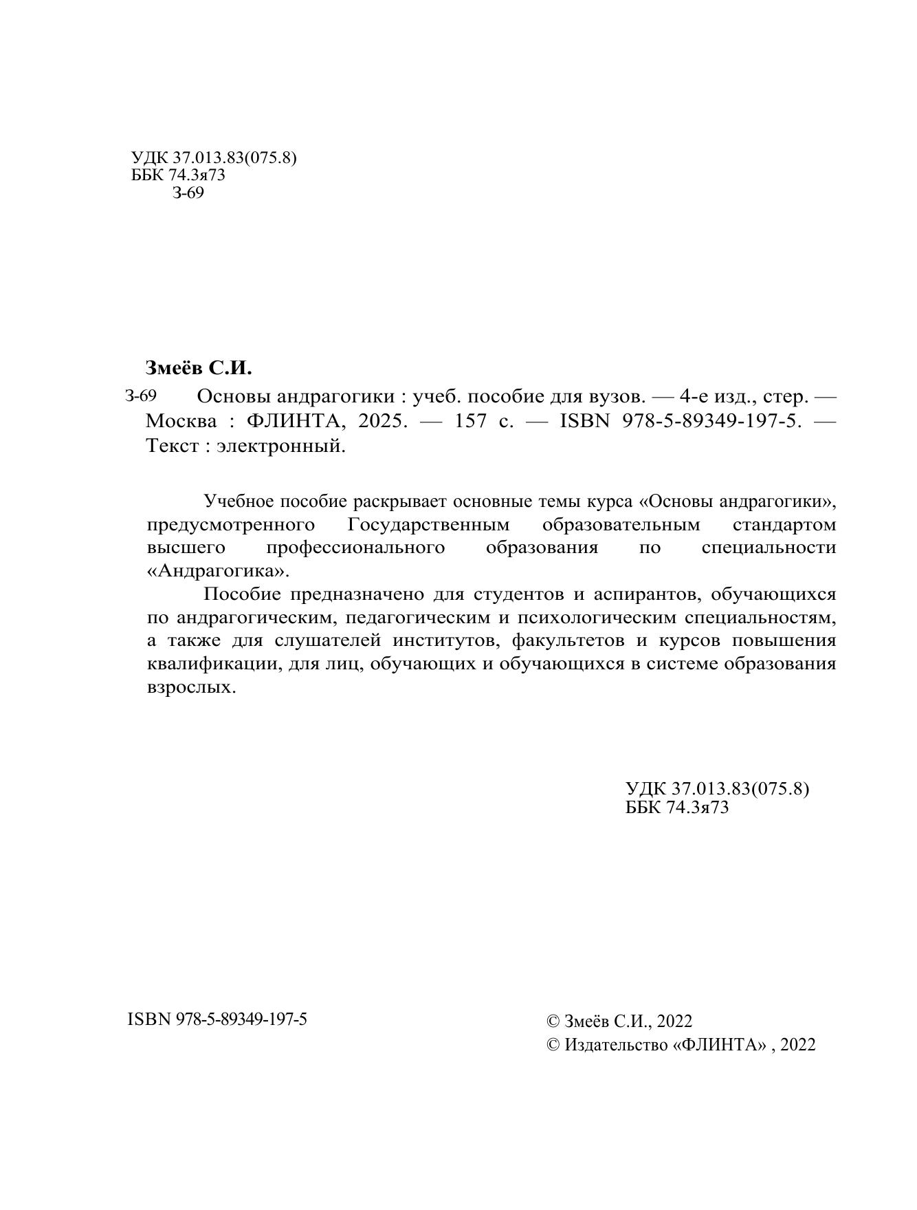 Учебное пособие раскрывает основные темы курса«Основы андрагогики», предусмотренного Государственным образовательным стандартом высшего профессионального образования по специальности «Андрагогика». Пособие предназначено для студентов и аспирантов, обучающихся по андрагогическим, педагогическим и психологическим специальностям, а также для слушателей институтов, факультетов и курсов повышения квалификации, для лиц, обучающих и обучающихся в системе образования взрослых.