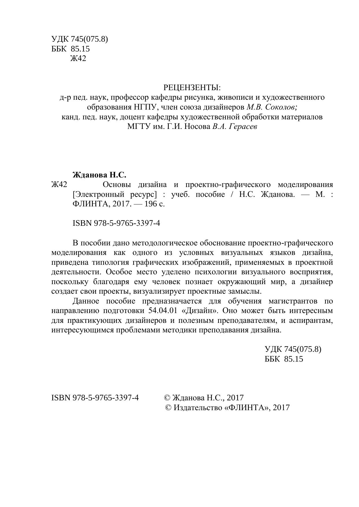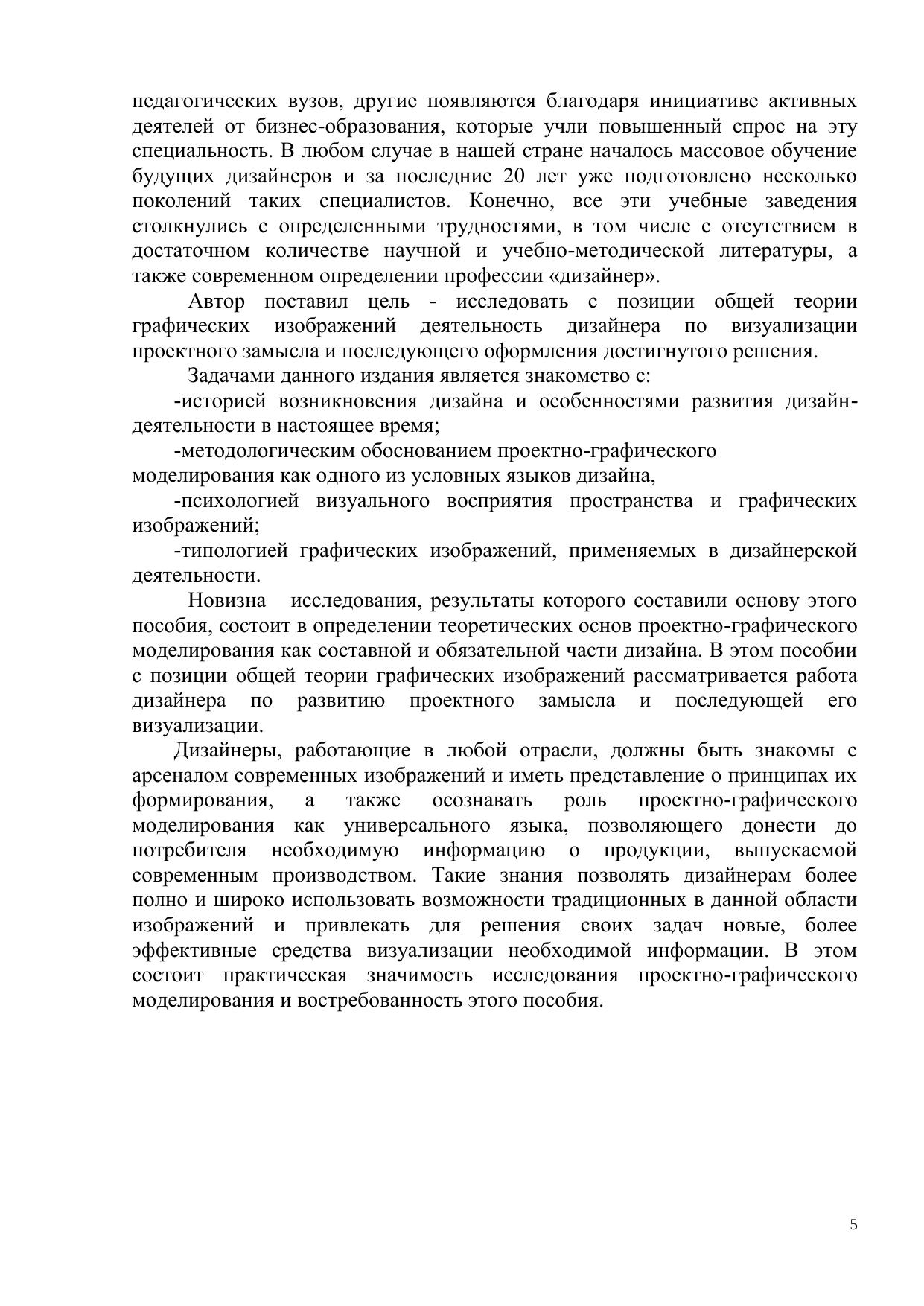 В пособии дано методологическое обоснование проектно-графического моделирования как одного из условных визуальных языков дизайна, приведена типология графических изображений, применяемых в проектной деятельности. Особое место уделено психологии визуального восприятия, поскольку благодаря ему человек познает окружающий мир, а дизайнер создает свои проекты, визуализирует проектные замыслы. Данное пособие предназначается для обучения магистрантов по направлению подготовки 54.04.01 «Дизайн». Оно может быть интересным для практикующих дизайнеров и полезным преподавателям, и аспирантам, интересующимся проблемами методики преподавания дизайна.