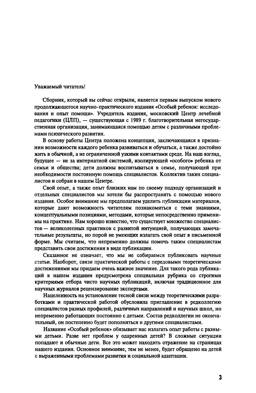 Особый ребенок. Исследования и опыт помощи. Вып. 1