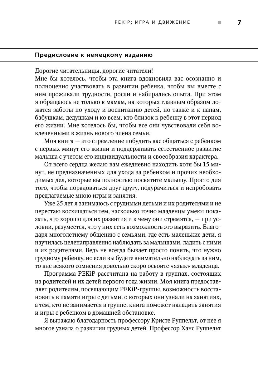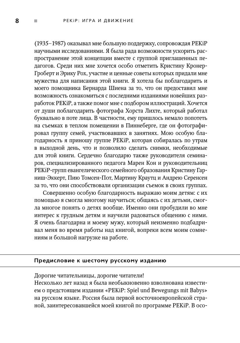Опора на двигательную и познавательную активность младенца в первый год его жизни — ключевое положение Пражской программы «Родители и дети» (PEKiP), которая с середины 70-х годов XX века широко распространилась и по сей день успешно применяется в разных странах. Первое издание книги «PEKiP: игра и движение» появилось в 1993 г. и стало бестселлером в Германии.
