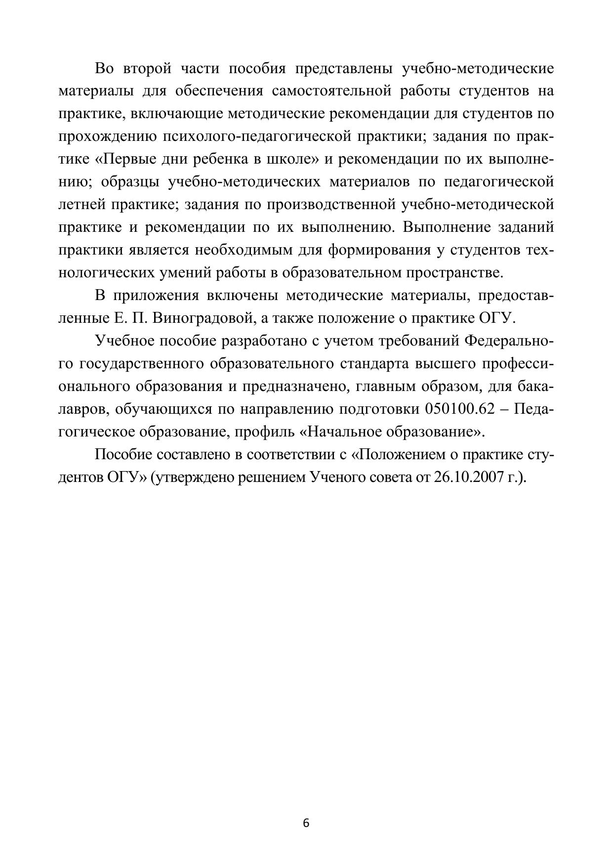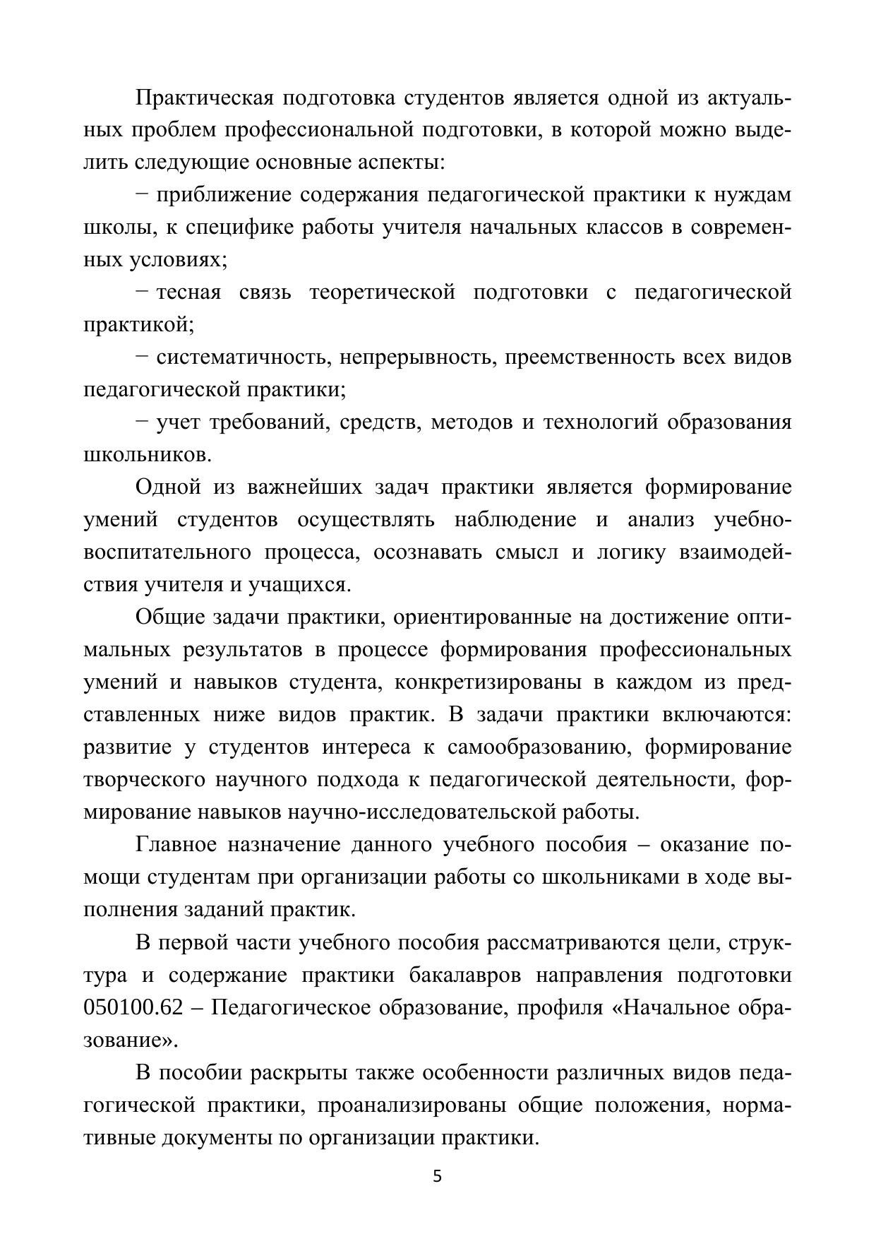 Пособие представляет собой комплекс учебно-методических материалов по организации и проведению учебных и производственных практик, предусмотренных учебным планом профиля, и служит для обеспечения компетентностного подхода в профессиональной подготовке учителей начальных классов. Пособие предназначено для бакалавров, обучающихся по направлению подготовки 050100.62 – Педагогическое образование, профиль «Начальное образование».
