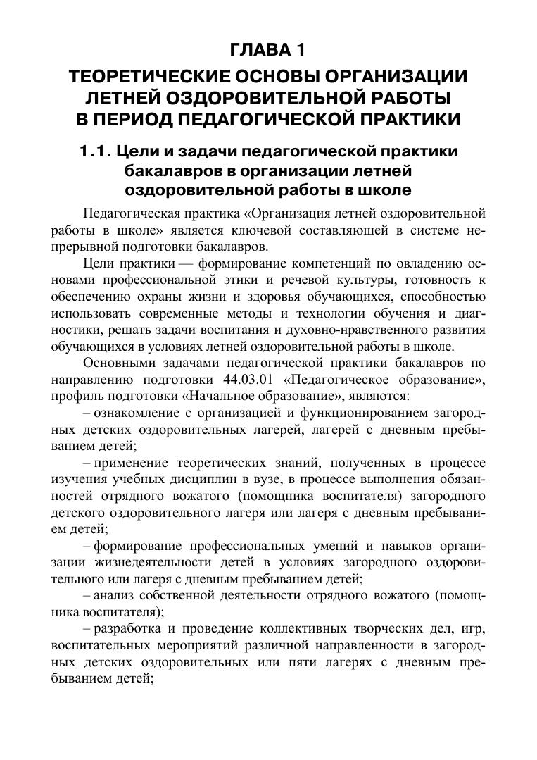 В учебно-методическом пособии изложены теоретико-методические основы организации педагогической практики бакалавров в загородных детских оздоровительных лагерях и лагерях с дневным пребыванием детей. Представленные в издании сопроводительные материалы по педагогической практике необходимы для выполнения основных функций вожатого (помощника воспитателя) в загородных детских оздоровительных и с дневным пребыванием летних лагерях. Учебно-методическое пособие адресовано бакалаврам педагогических вузов, факультетов дошкольного и начального образования, обучающихся по направлению «Педагогическое образование», профиль «Начальное образование», а также аспирантам, руководителям практик и педагогическим работникам детских лагерей.