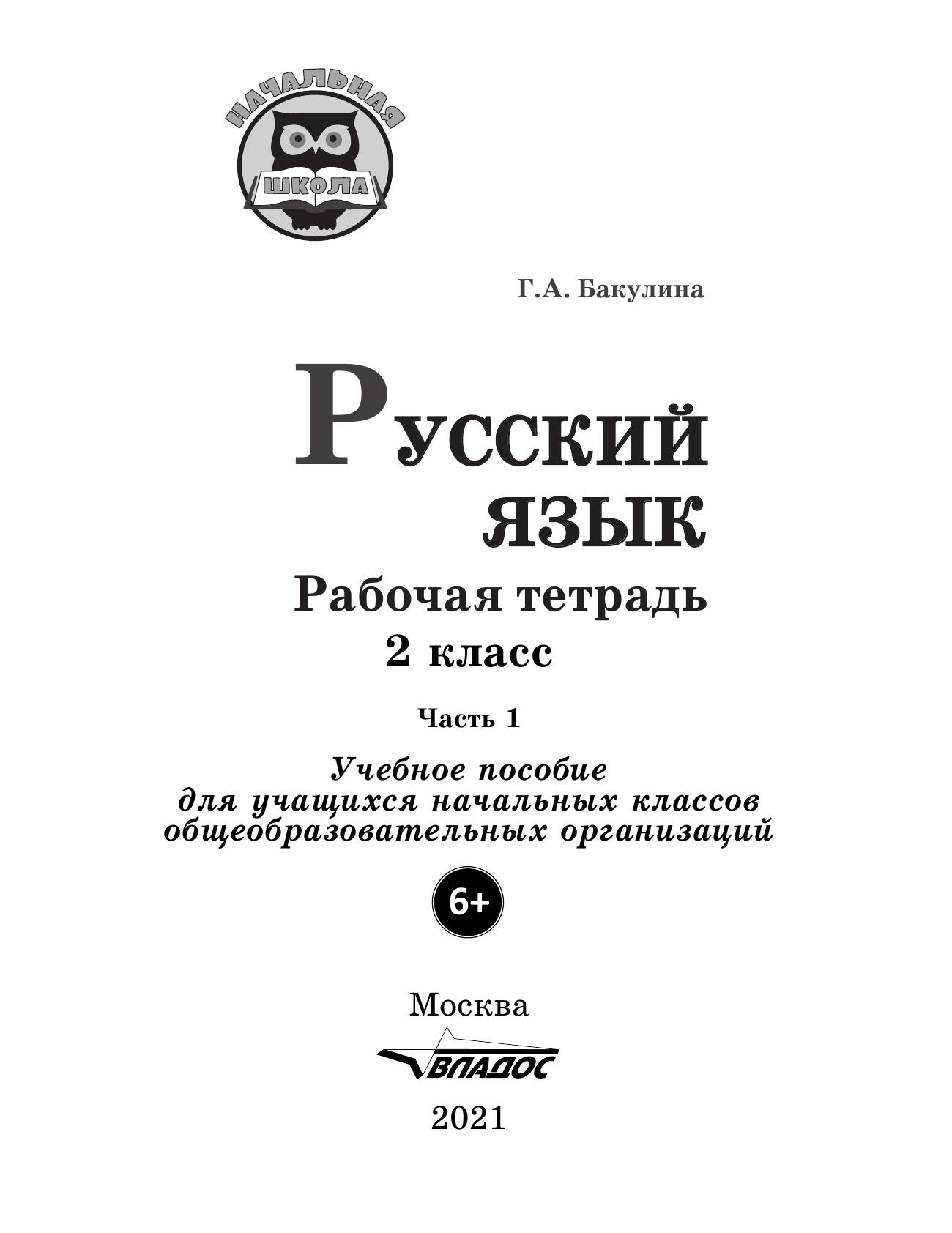 Русский язык. Рабочая тетрадь. 2 класс. В 2 ч. Ч. 1