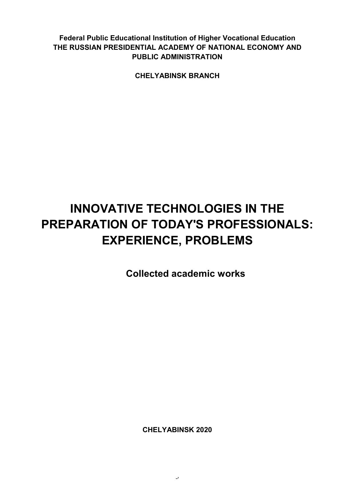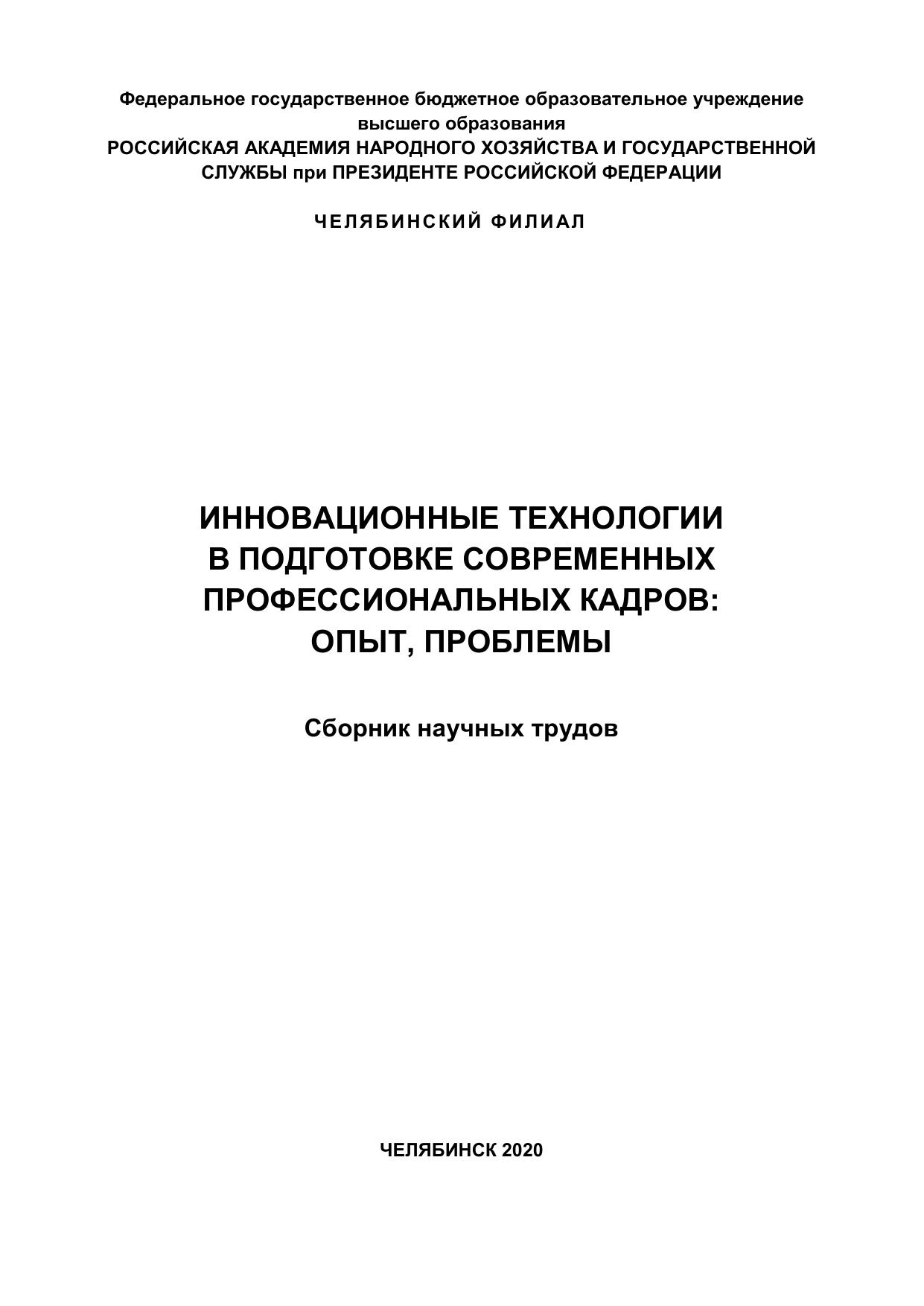 Инновационные технологии в подготовке современных профессиональных кадров: опыт, проблемы: сборник научных трудов
