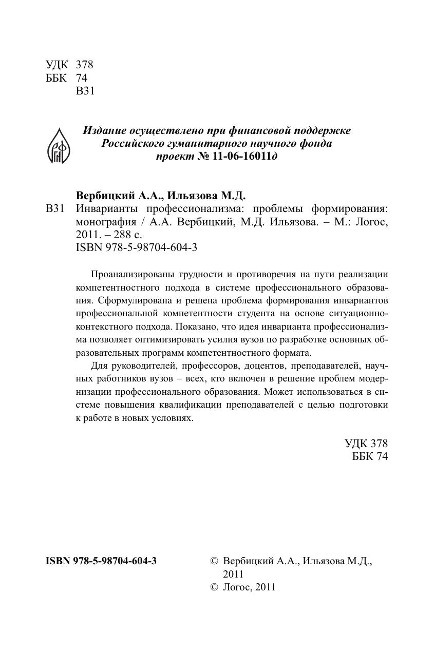 Авторы: Вербицкий А. А., Ильязова М. Д.