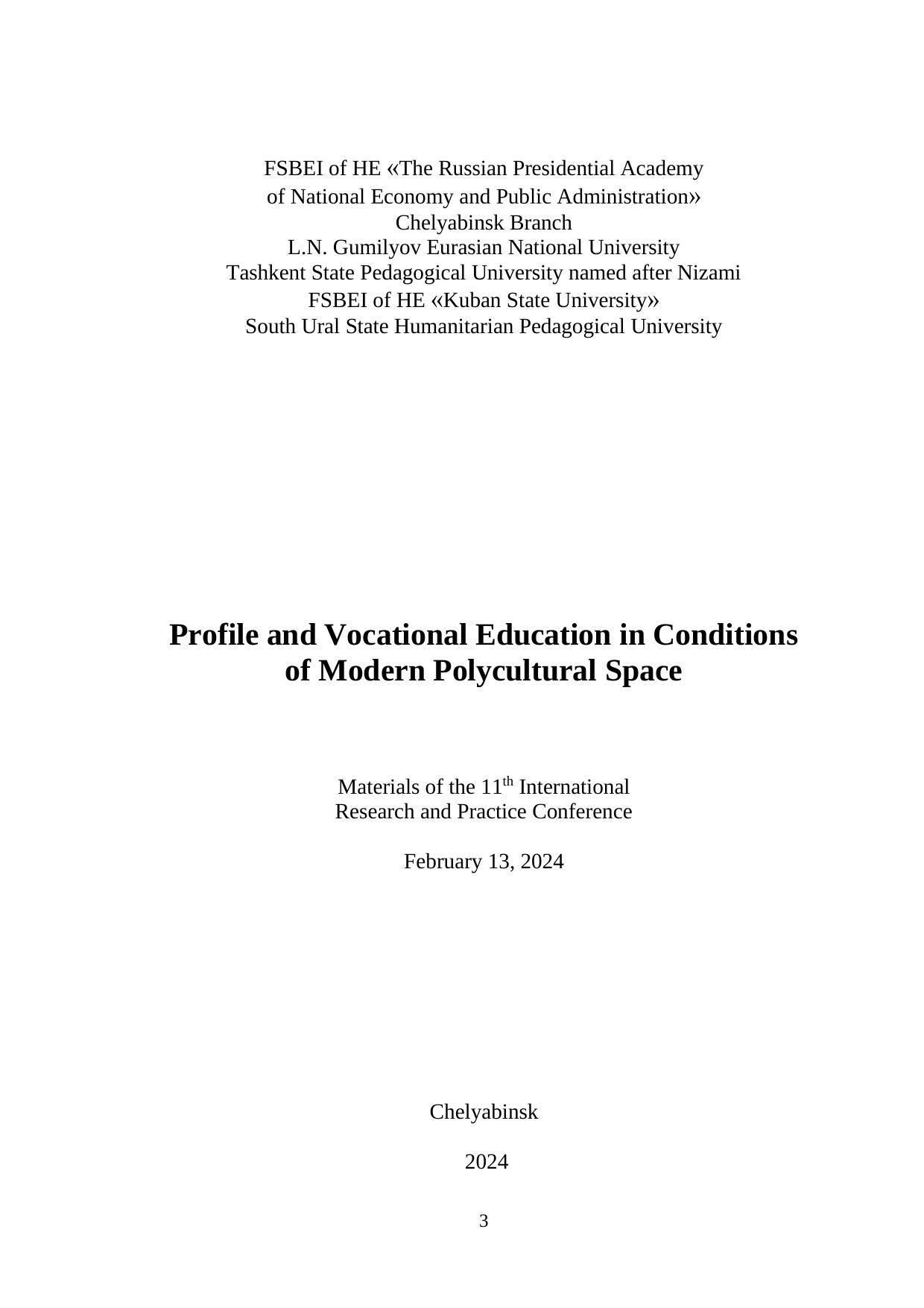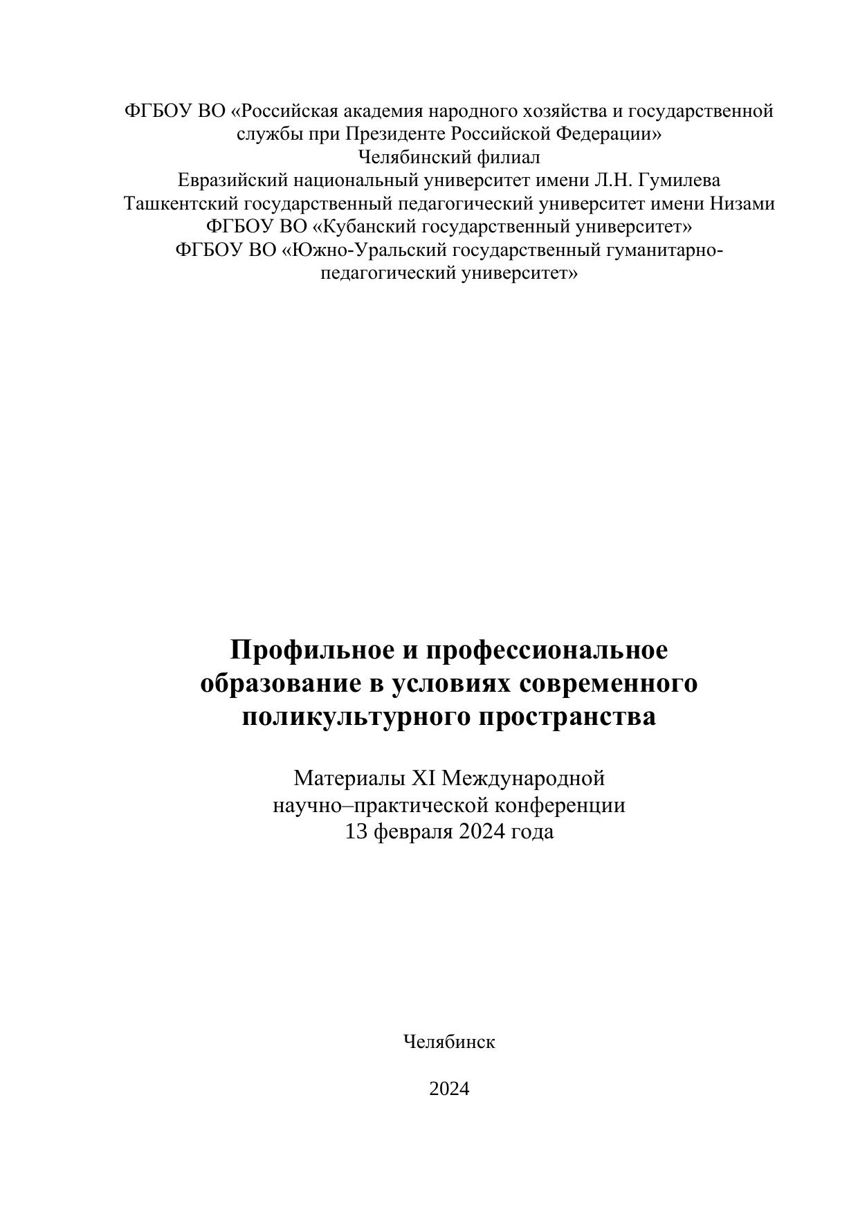 Профильное и профессиональное образование в условиях современного поликультурного пространства: Материалы XI Международной научно–практической конференции (13.02.2024)