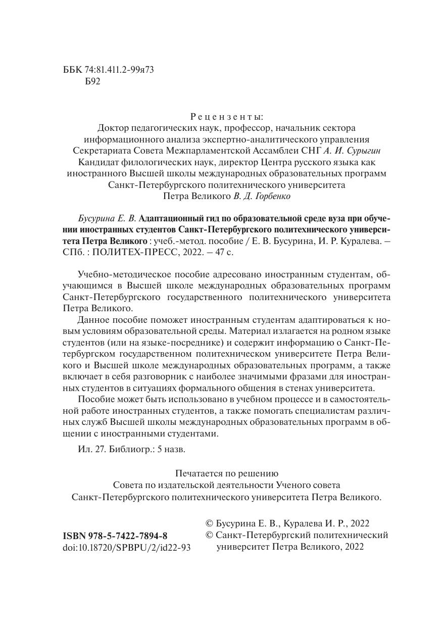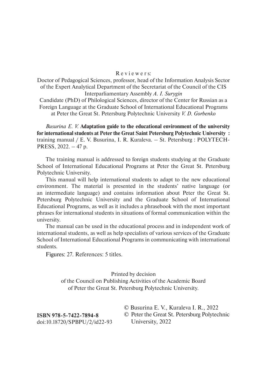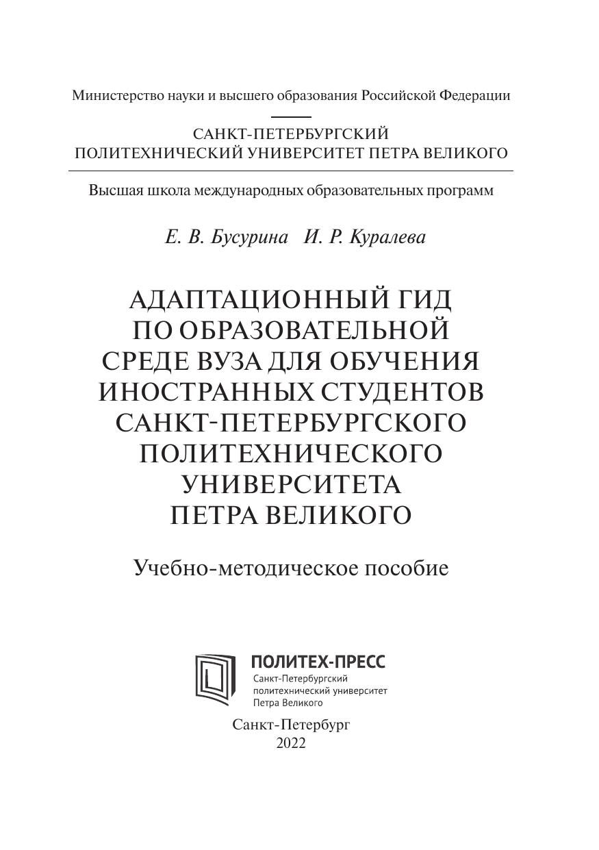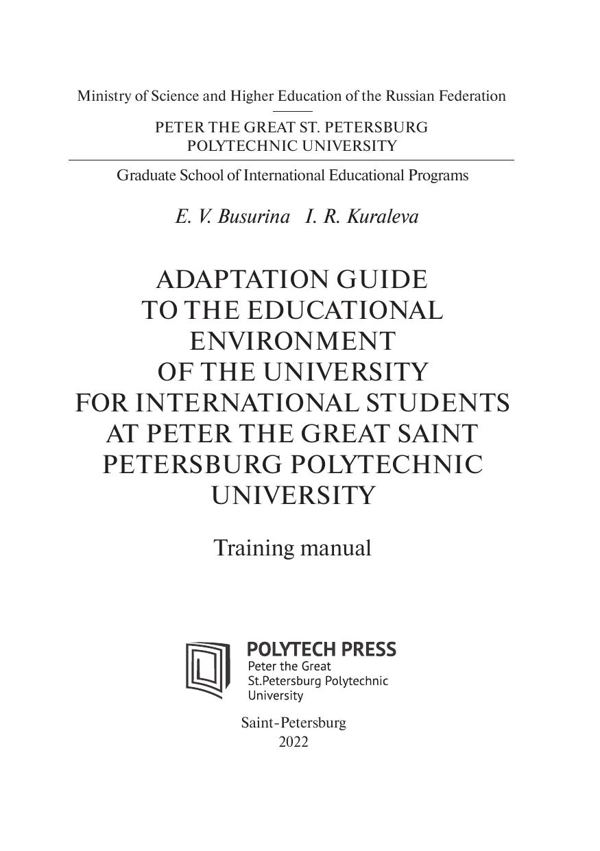 Адаптационный гид по образовательной среде вуза при обучении иностранных студентов Санкт-Петербургского политехнического университета Петра Великого