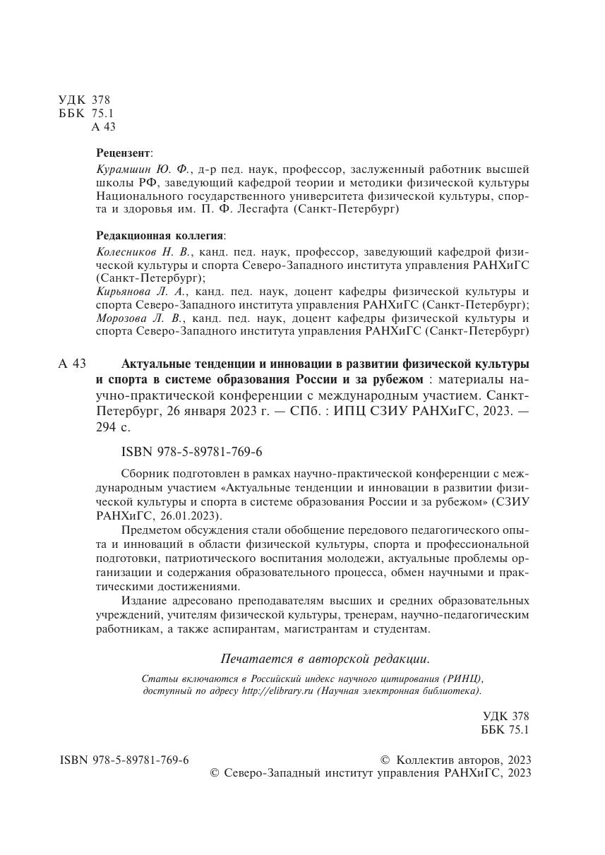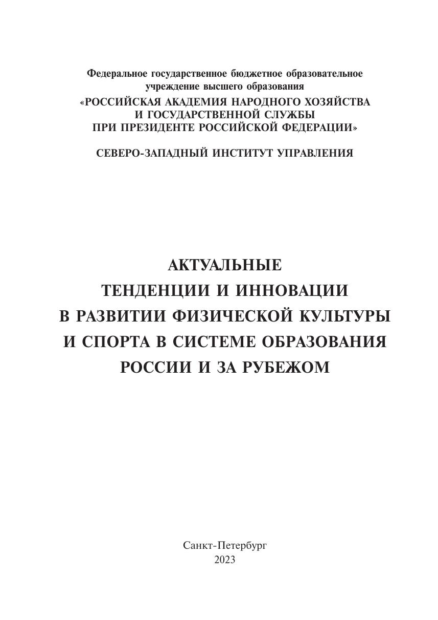 Актуальные тенденции и инновации в развитии физической культуры и спорта в системе образования России и за рубежом: материалы научно-практической конференции с международным участием. Санкт-Петербург, 26 января 2023 г.
