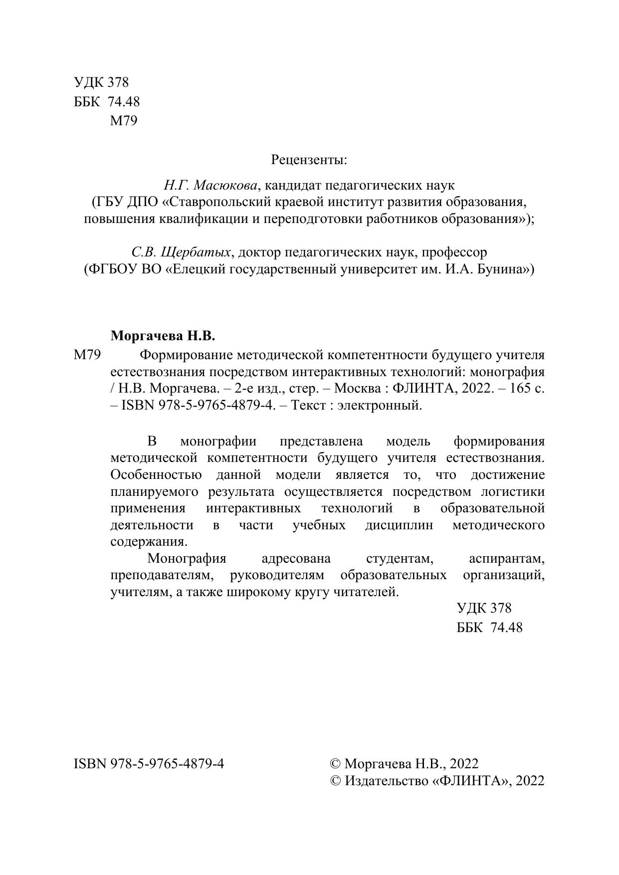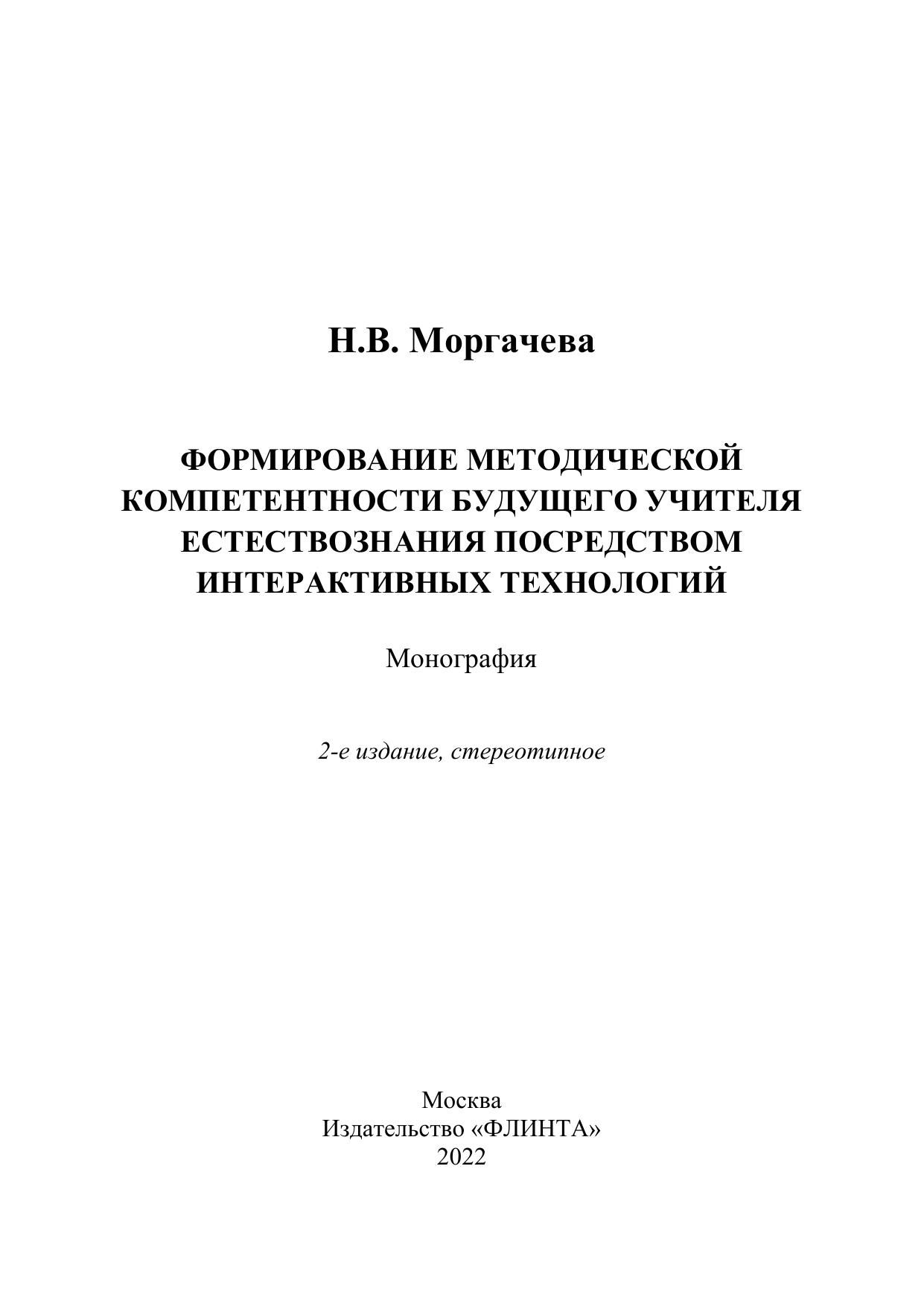 В монографии представлена модель формирования методической компетентности будущего учителя естествознания. Особенностью данной модели является то, что достижение планируемого результата осуществляется посредством логистики применения интерактивных технологий в образовательной деятельности в части учебных дисциплин методического содержания.