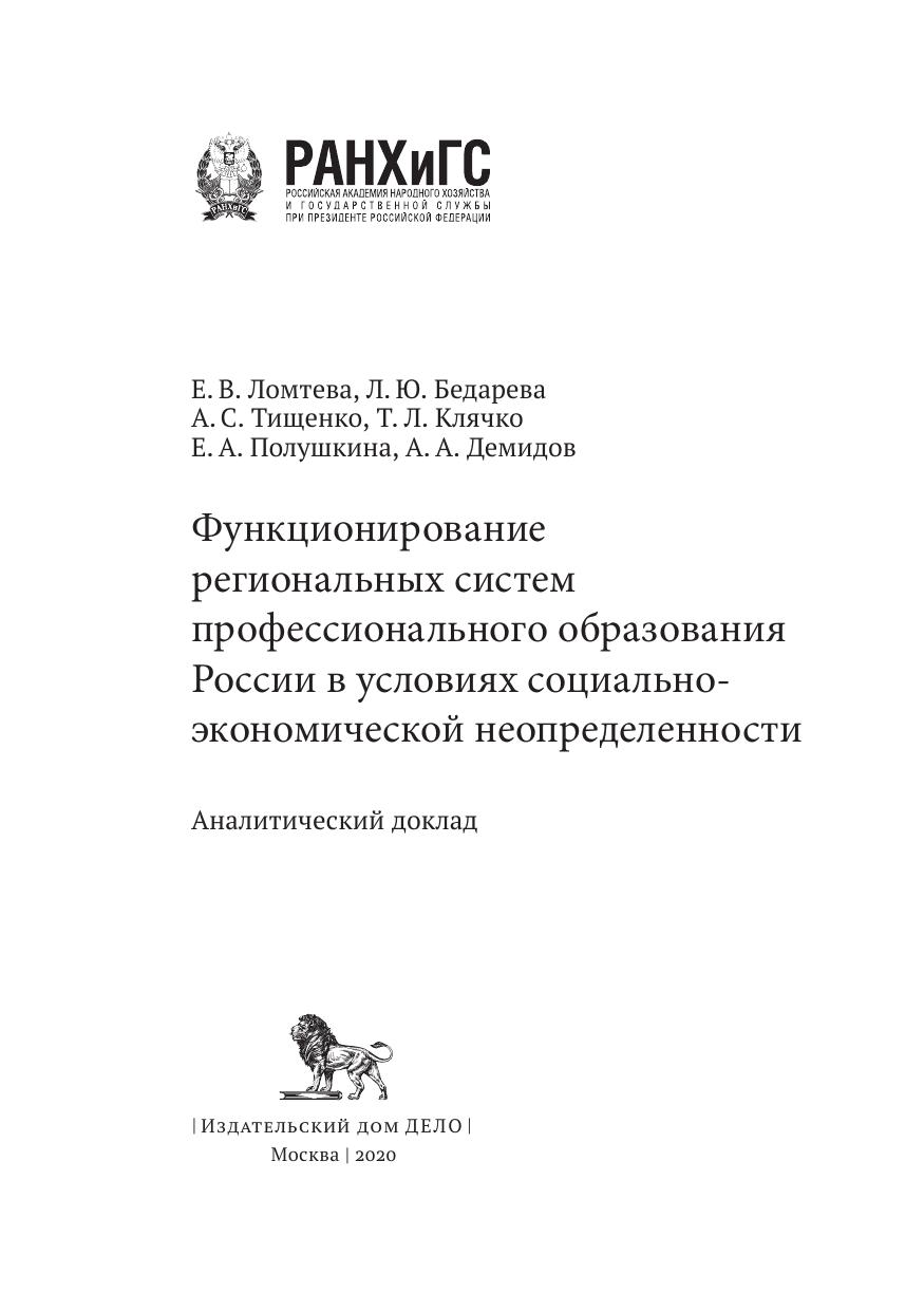 Функционирование региональных систем профессионального образования России в условиях социально-экономической неопределенности: аналитический доклад