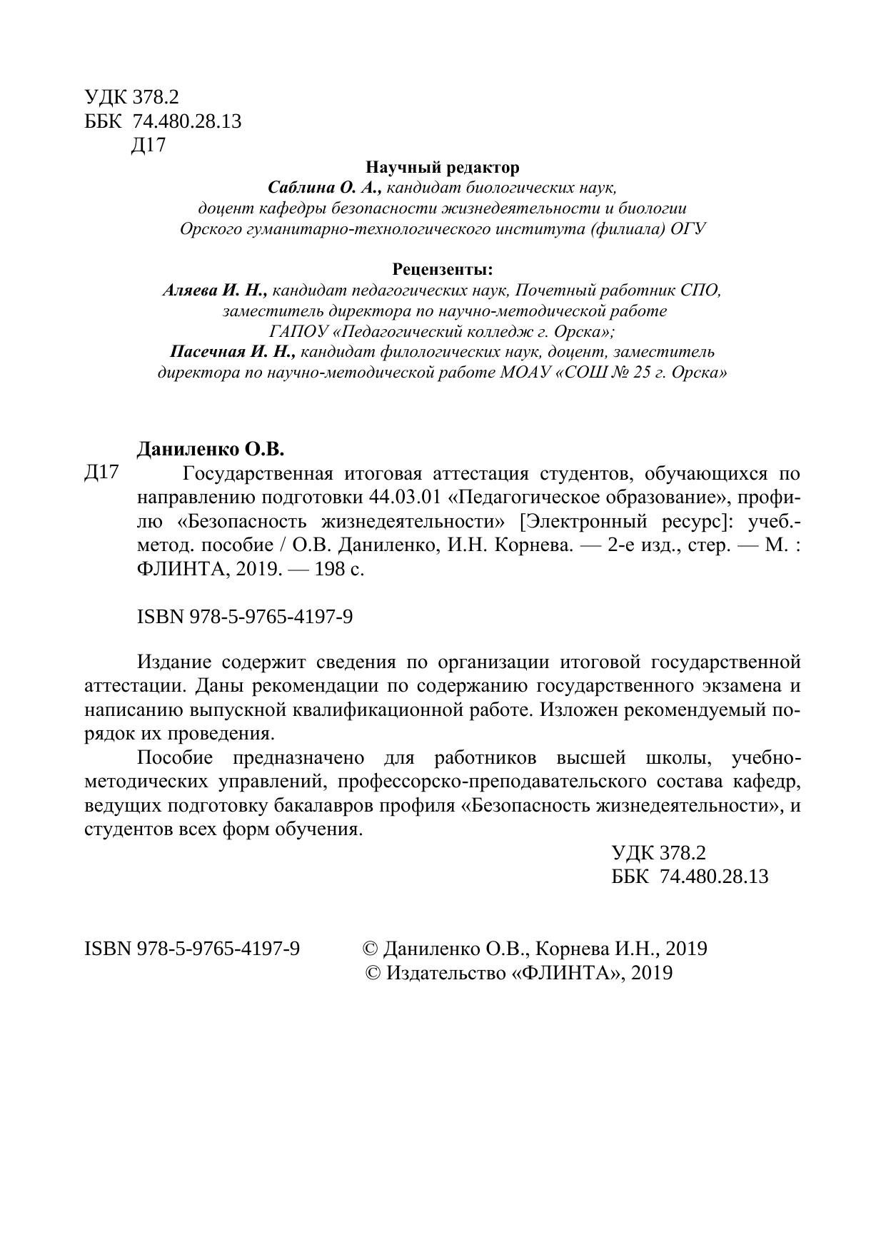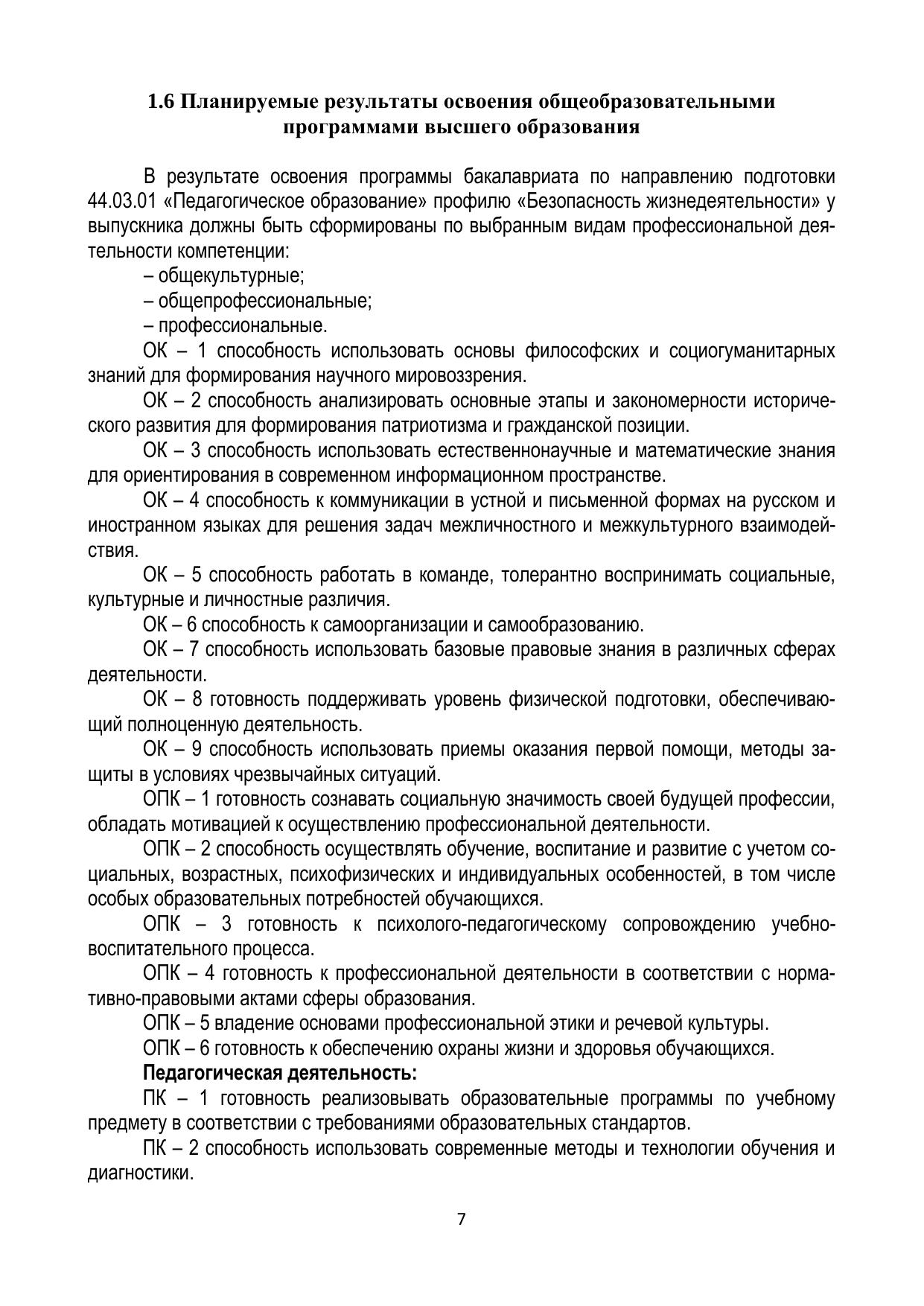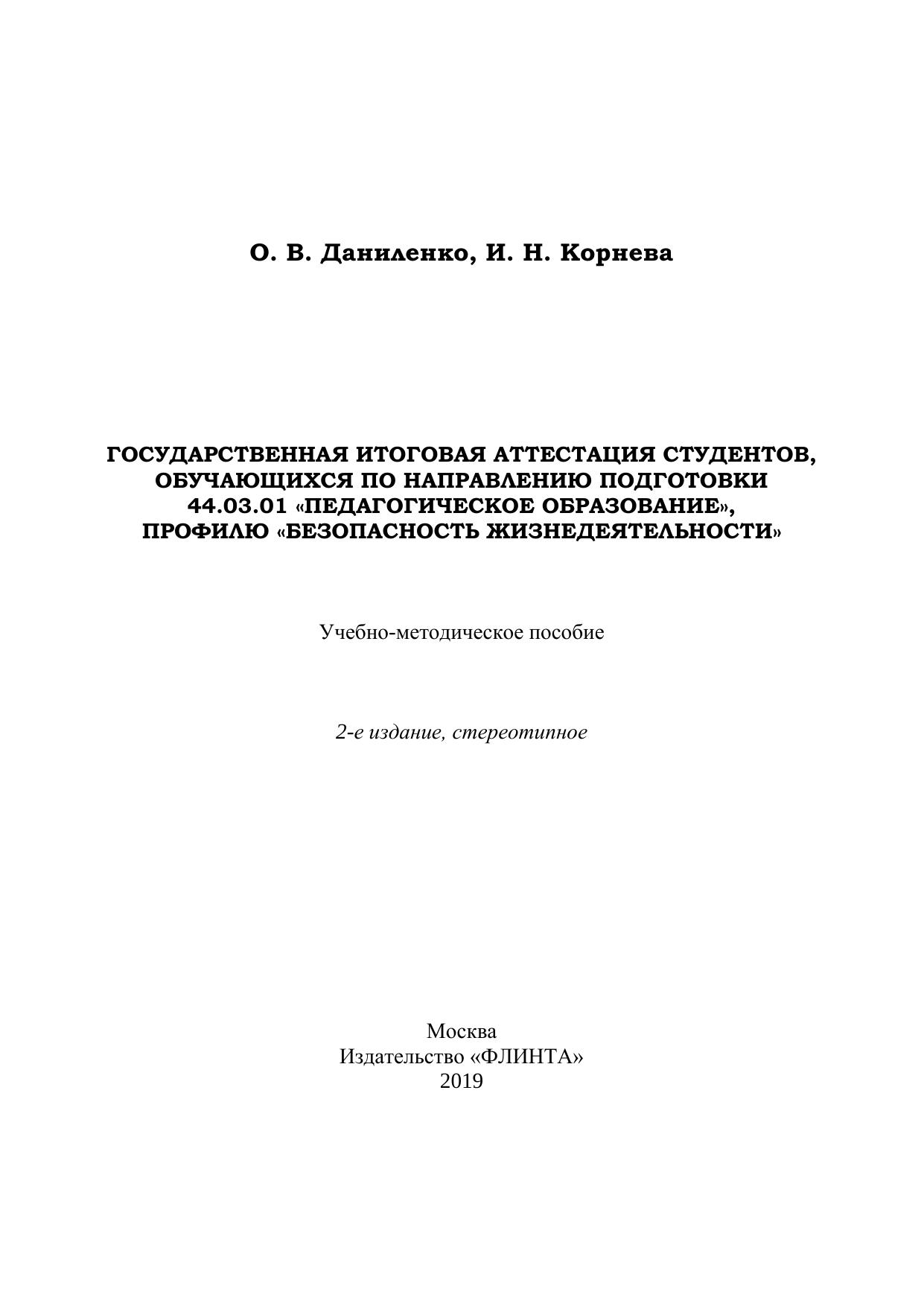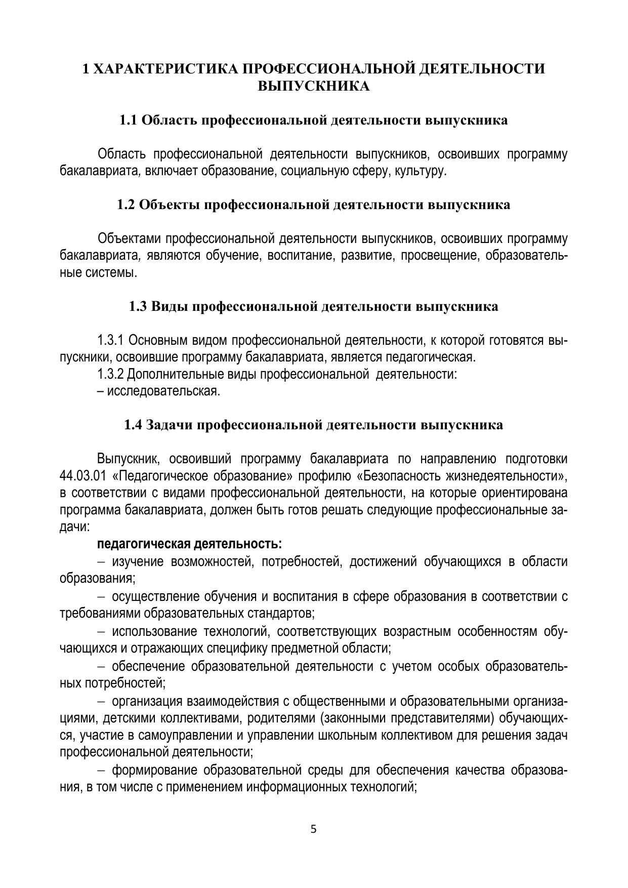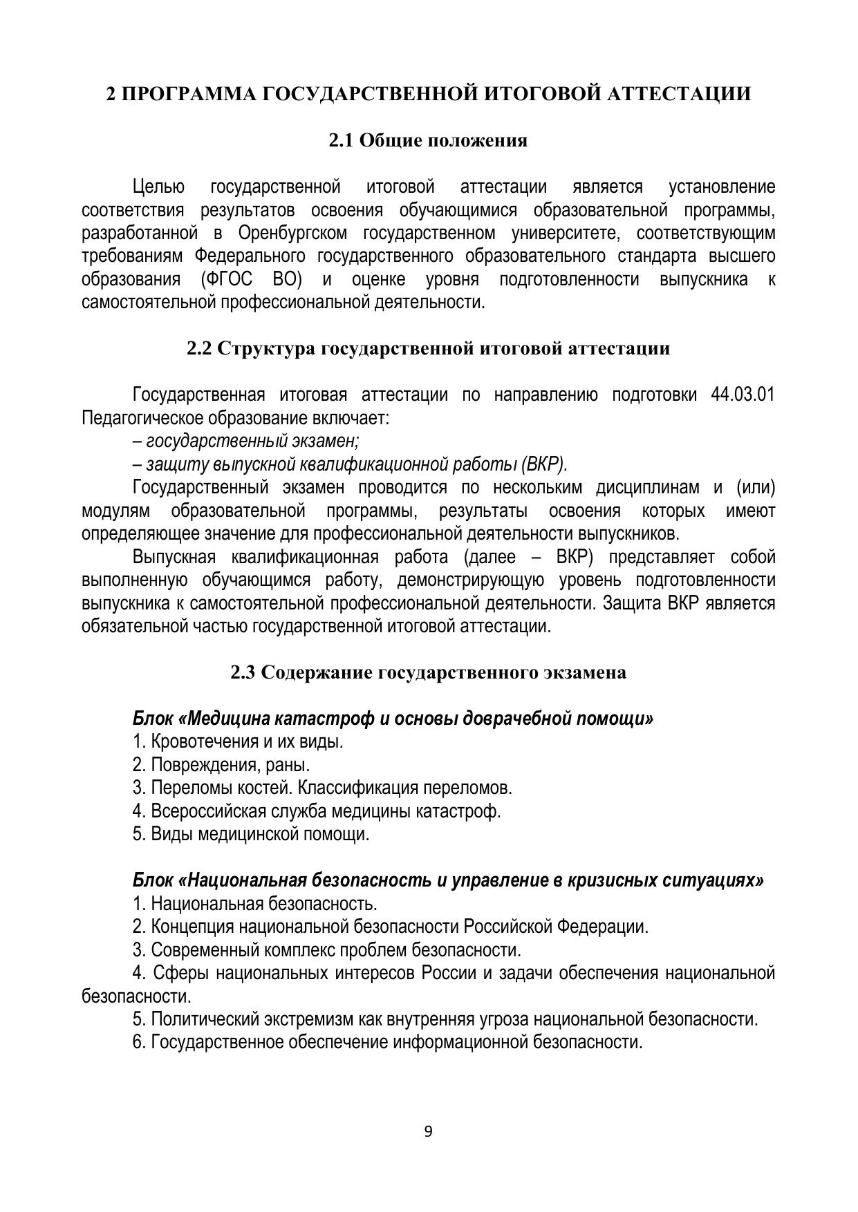 Государственная итоговая аттестация студентов, обучающихся по направлению подготовки 44.03.01 «Педагогическое образование», профилю «Безопасность жизнедеятельности»