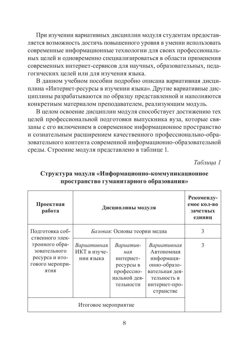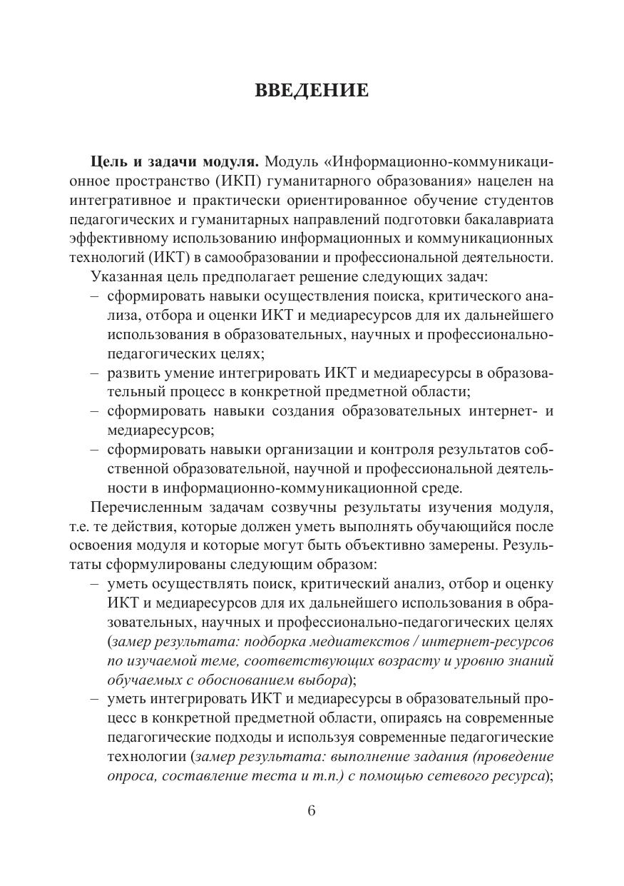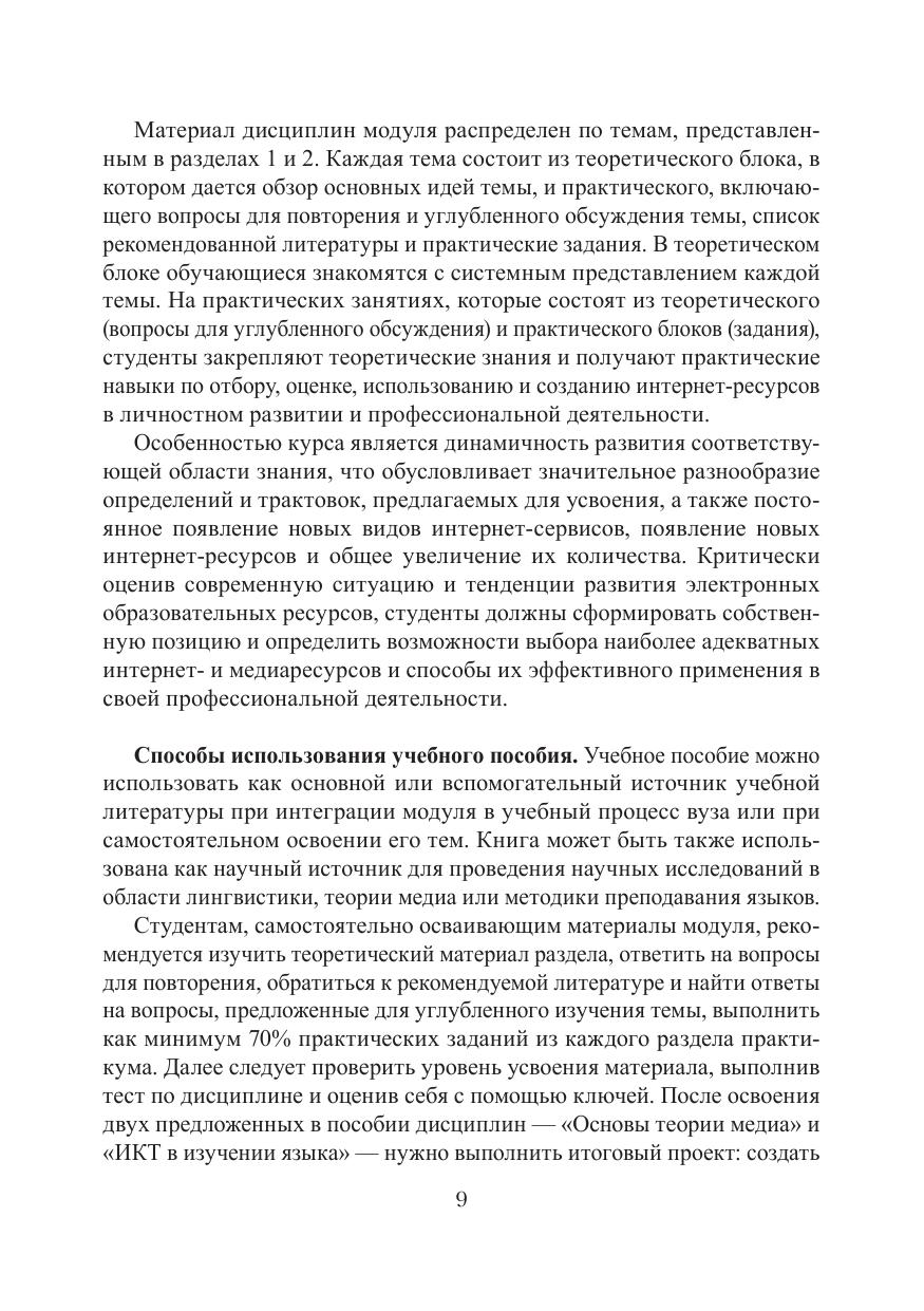 Пособие представляет материалы учебного модуля для студентов бакалавриата гуманитарных направлений подготовки, позволяющего планомерно сформировать навыки понимания современных ИКТ и медиаресурсов, умений их критически отбирать, оценивать и использовать в своих профессиональных, образовательных и научных целях.