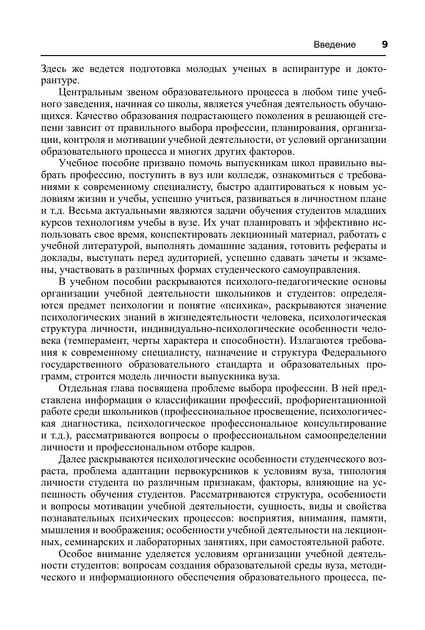 Комплексно, на междисциплинарной основе рассматриваются ключевые аспекты учебной деятельности студентов в высшем учебном заведении. Излагаются требования к современному специалисту, освещаются система и практика обучения в высшей школе. Раскрываются психологические особенности студенческого возраста. Для студентов и преподавателей высших учебных заведений. Может использоваться школьниками старших классов и их родителями при подготовке к поступлению в вузы.