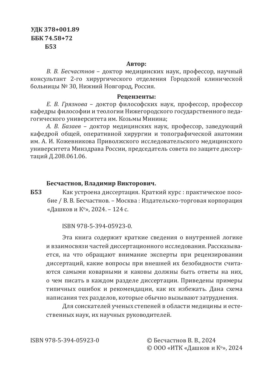 Эта книга содержит краткие сведения о внутренней логике и взаимосвязи частей диссертационного исследования. Рассказывается, на что обращают внимание эксперты при рецензировании диссертаций, какие вопросы при внешней их безобидности считаются самыми коварными и каковы должны быть ответы на них, о чем писать в каждом разделе диссертации. Приведены примеры типичных ошибок и рекомендации, как их избежать. Дана схема написания тех разделов, которые обычно вызывают затруднения.