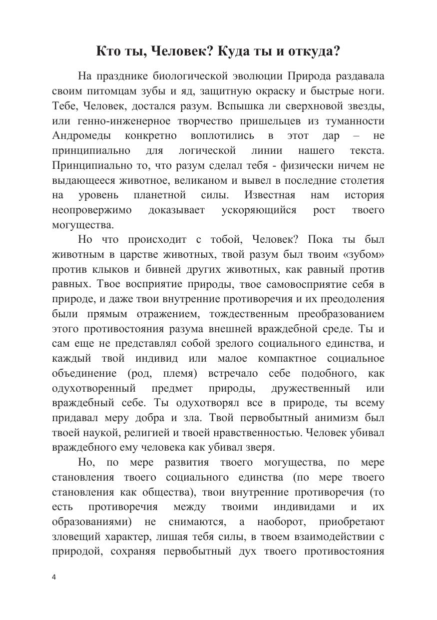 На празднике биологической эволюции Природа раздала своим питомцам зубы и яд, защитную окраску и быстрые ноги. Тебе, Человек, достался разум. Вспышка ли сверхновой звезды, или генно-инженерное творчество пришельцев из туманности Андромеды конкретно воплотились в этот дар – не принципиально для логической линии нашего текста. Принципиально то, что разум сделает тебя – физически ничем не выдающимся животным, великаном и вывел в последние столетия на уровень планетной силы. Известная нам история неопровержимо доказывает ускоряющийся рост твоего могущества.