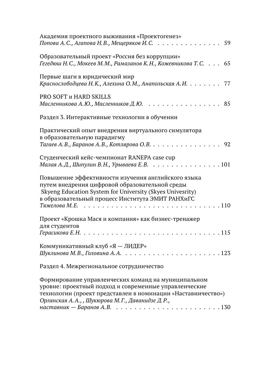 В сборнике представлены работы победителей конкурсных мероприятий общеакадемического акселератора лучших практик, проведенного в 2019/20 учебном году Институтом организационного развития и стратегических инициатив Российской академии народного хозяйства и государственной службы при Президенте Российской Федерации. В статьях сборника аккумулирован лучший опыт преподавателей и сотрудников академии в сфере развития и интеграции в процесс обучения инновационных образовательных технологий, а также технологий профессиональной ориентации абитуриентов, студентов и выпускников академии.