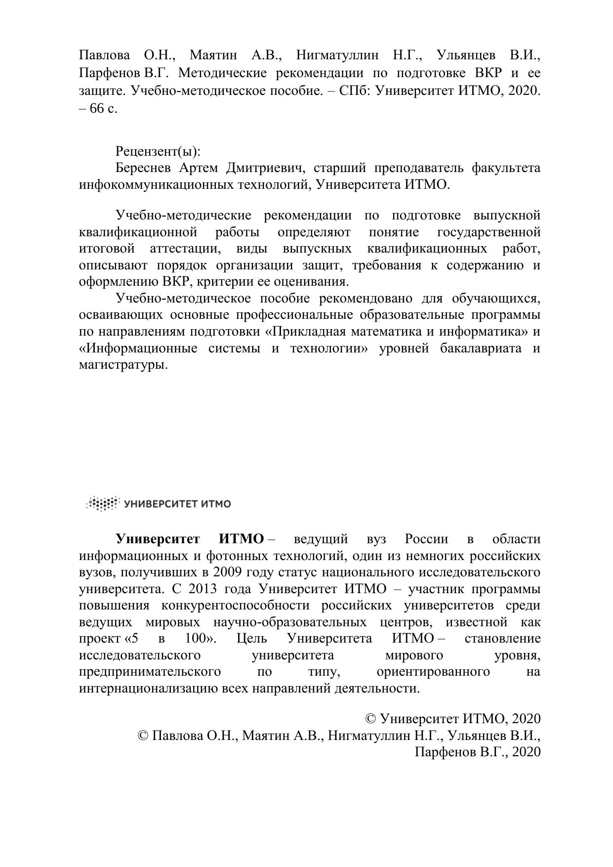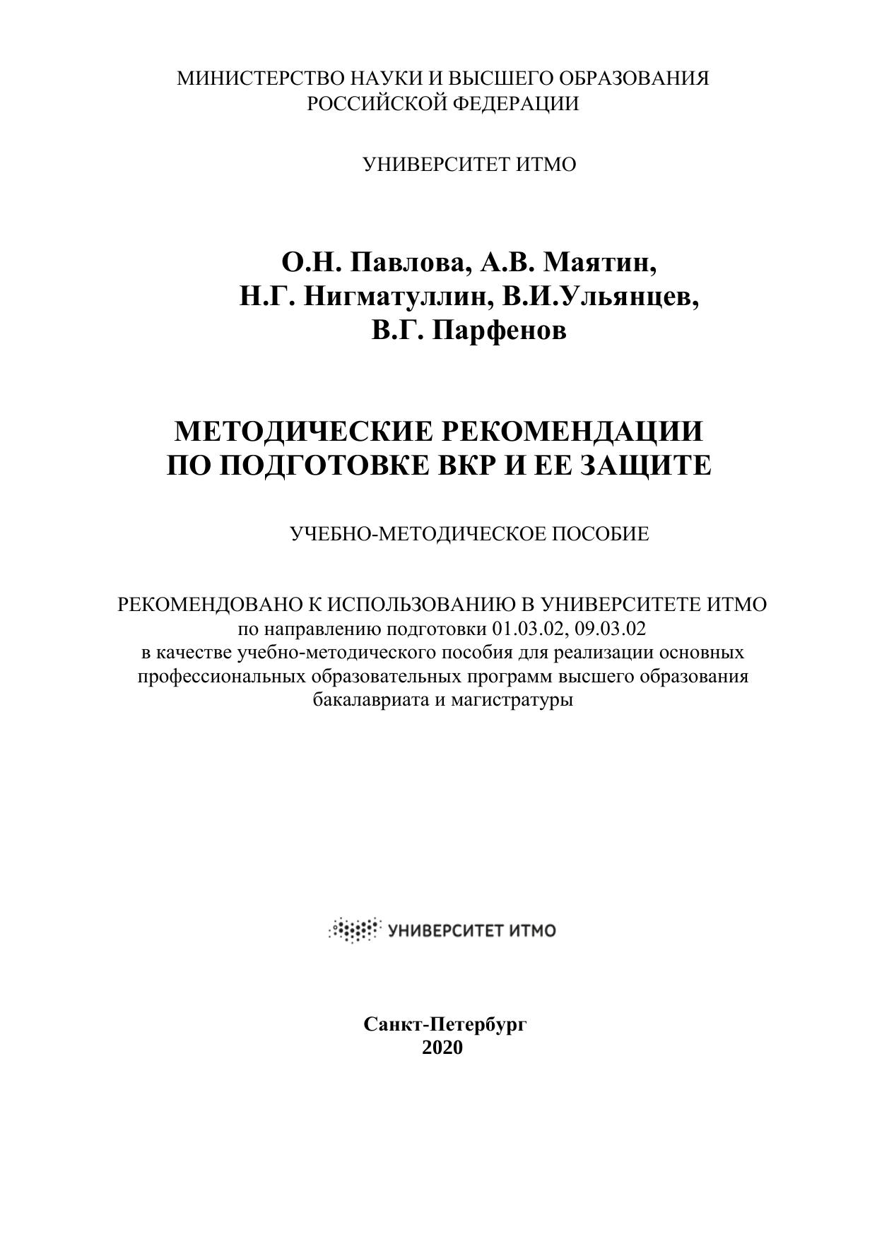 Учебно-методические рекомендации по подготовке выпускной квалификационной работы определяют понятие государственной итоговой аттестации, виды выпускных квалификационных работ, описывают порядок организации защит, требования к содержанию и оформлению ВКР, критерии ее оценивания.