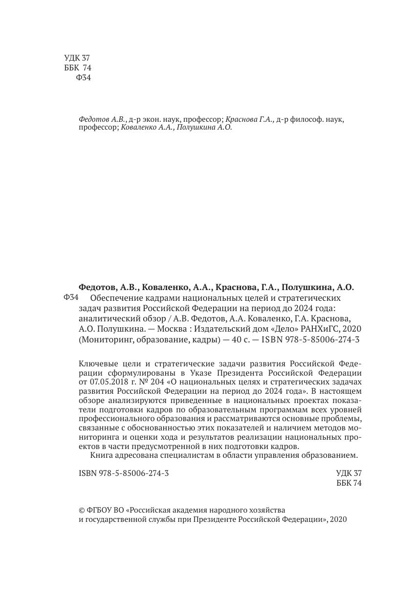 Обеспечение кадрами национальных целей и стратегических задач развития Российской Федерации на период до 2024 года: аналитический обзор