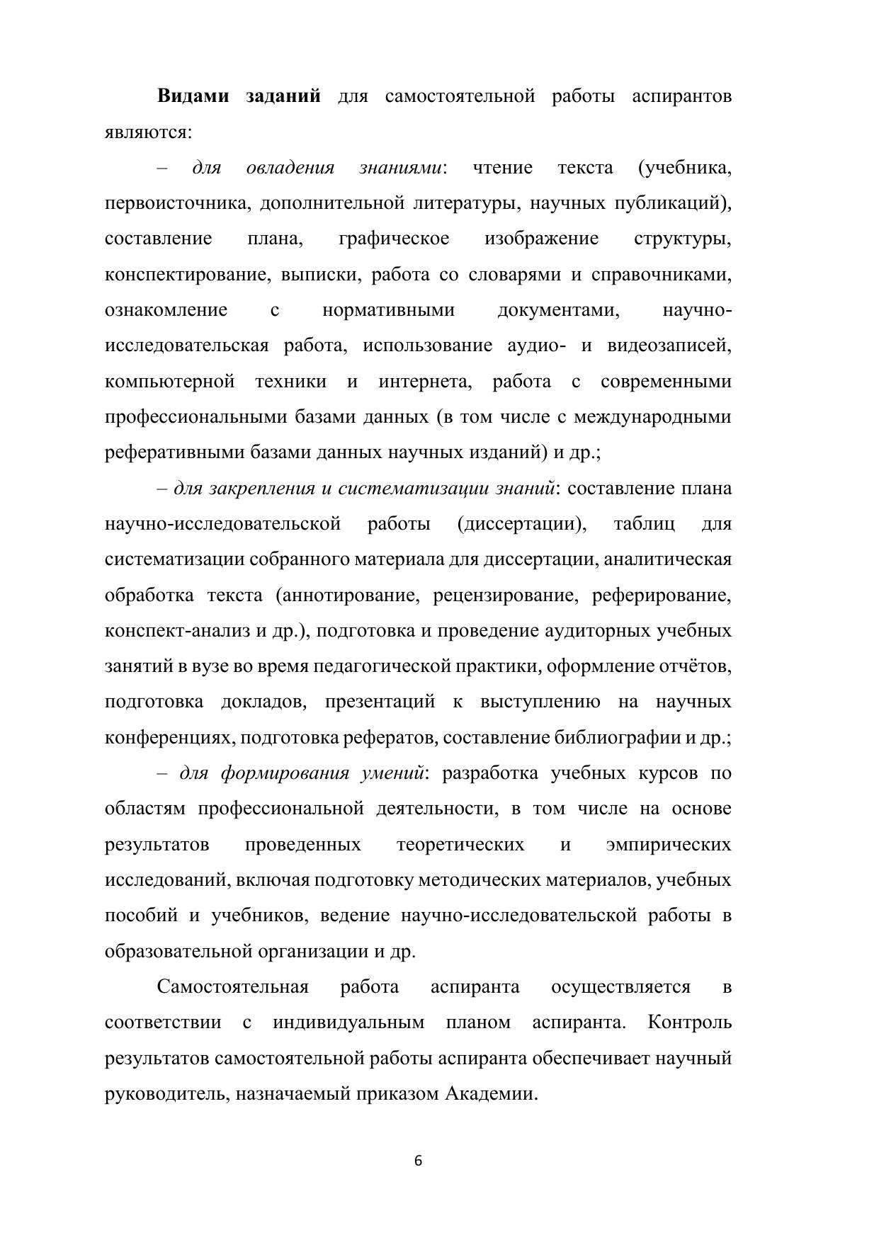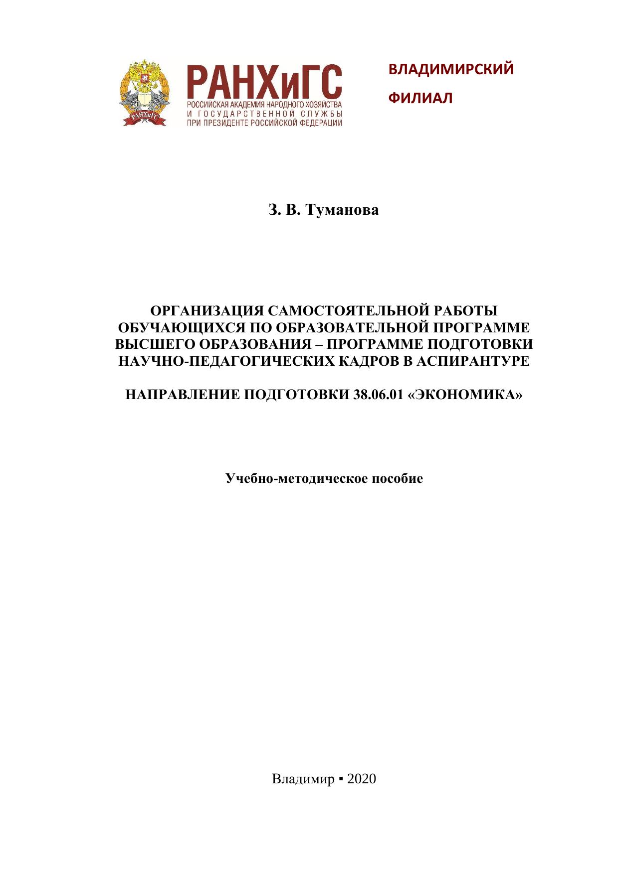 Организация самостоятельной работы обучающихся по образовательной программе высшего образования – программе подготовки научно-педагогических кадров в аспирантуре. Направление подготовки 38.06.01 «Экономика»