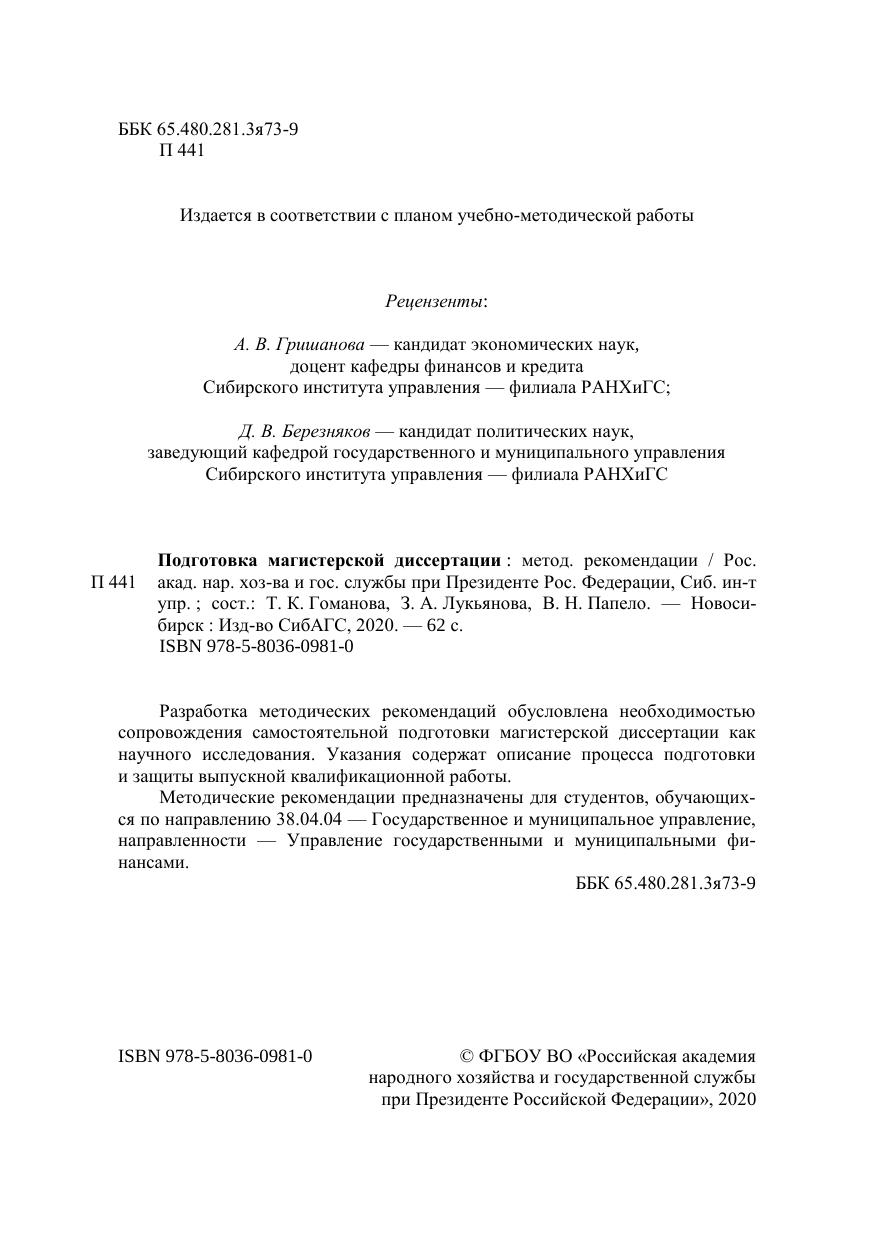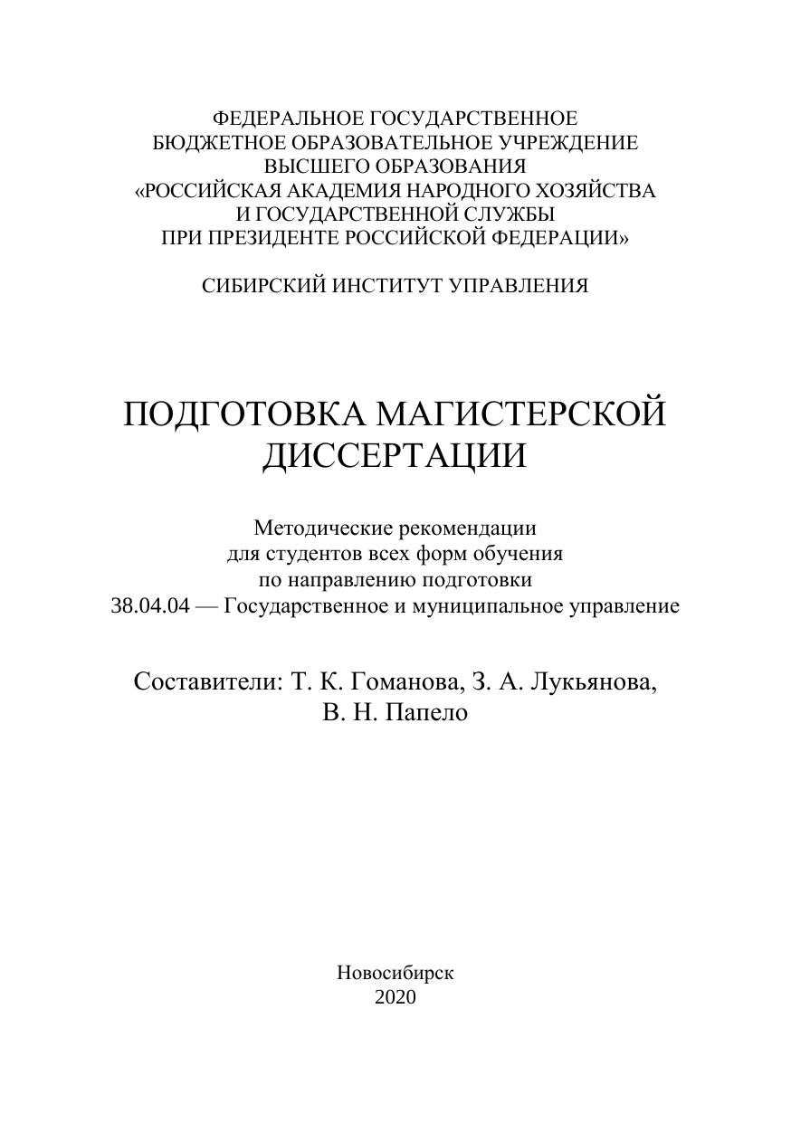 Разработка методических рекомендаций обусловлена необходимостью сопровождения самостоятельной подготовки магистерской диссертации как научного исследования. Указания содержат описание процесса подготовки и защиты выпускной квалификационной работы. Методические рекомендации предназначены для студентов, обучающих-ся по направлению 38.04.04 — Государственное и муниципальное управление, направленности — Управление государственными и муниципальными фи-нансами.