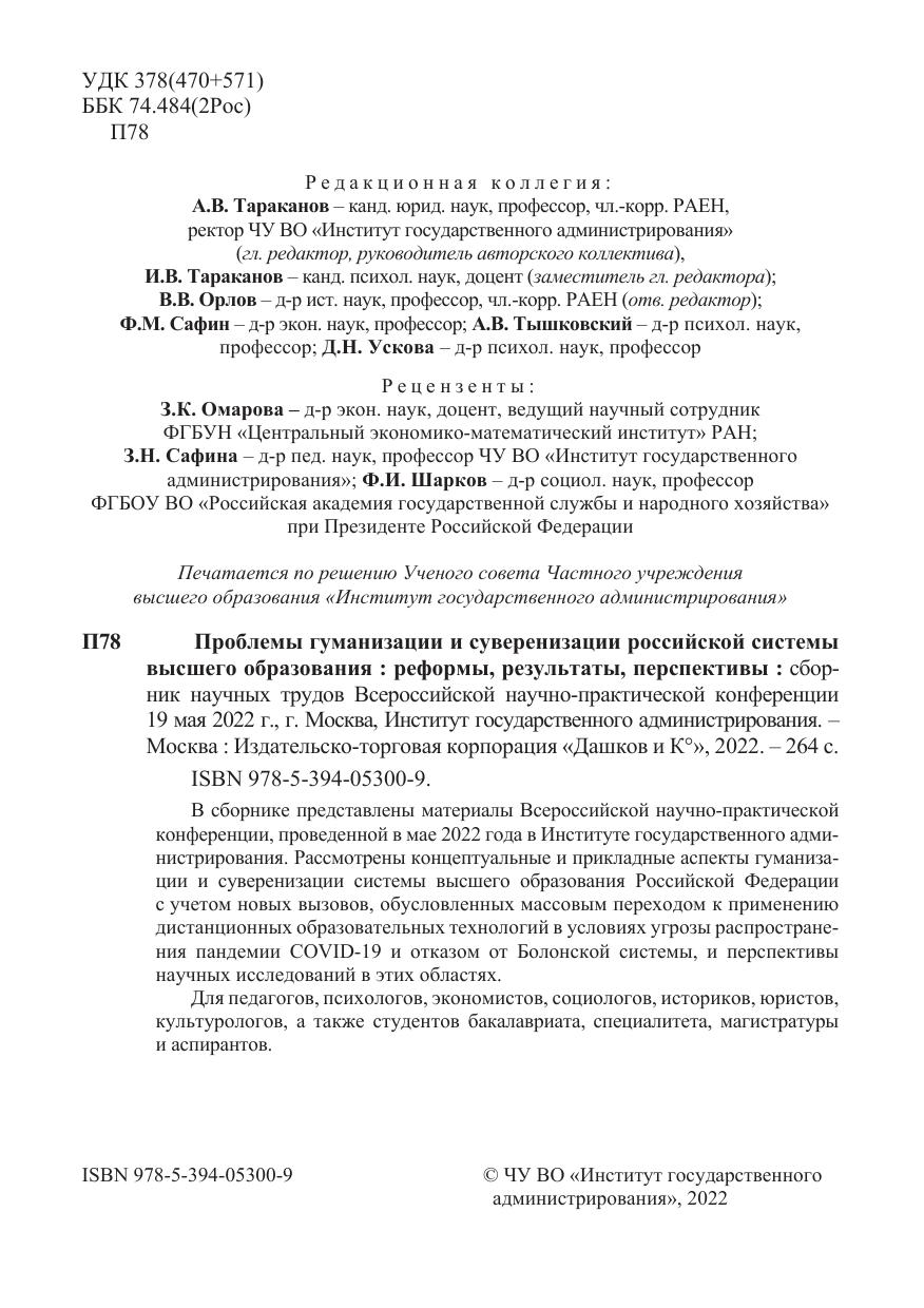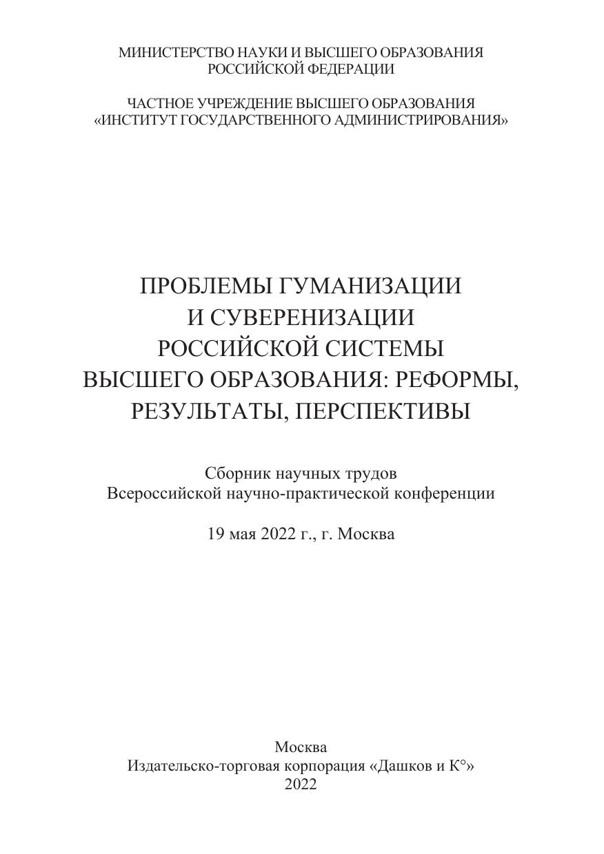 Проблемы гуманизации и суверенизации российской системы высшего образования: реформы, результаты, перспективы: Сборник научных трудов Всероссийской научно-практической конференции 19 мая 2022г.