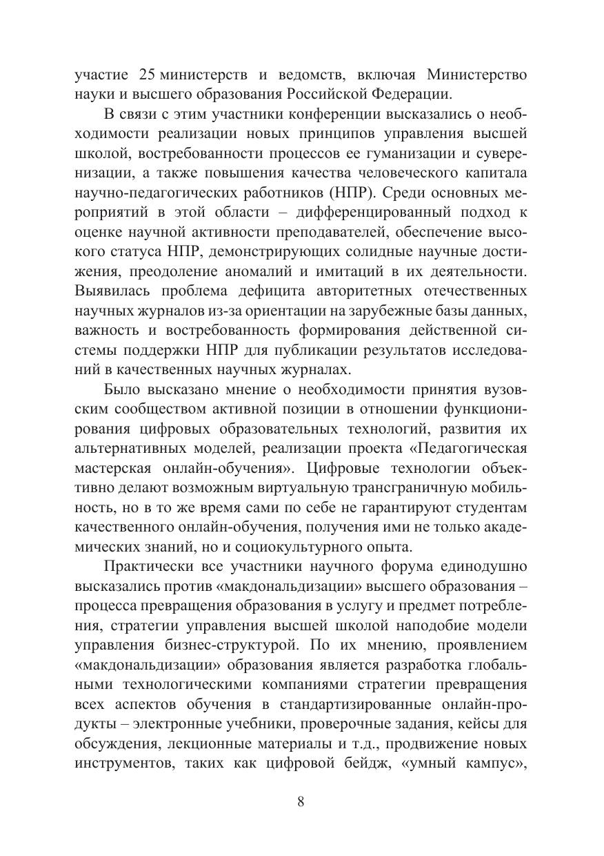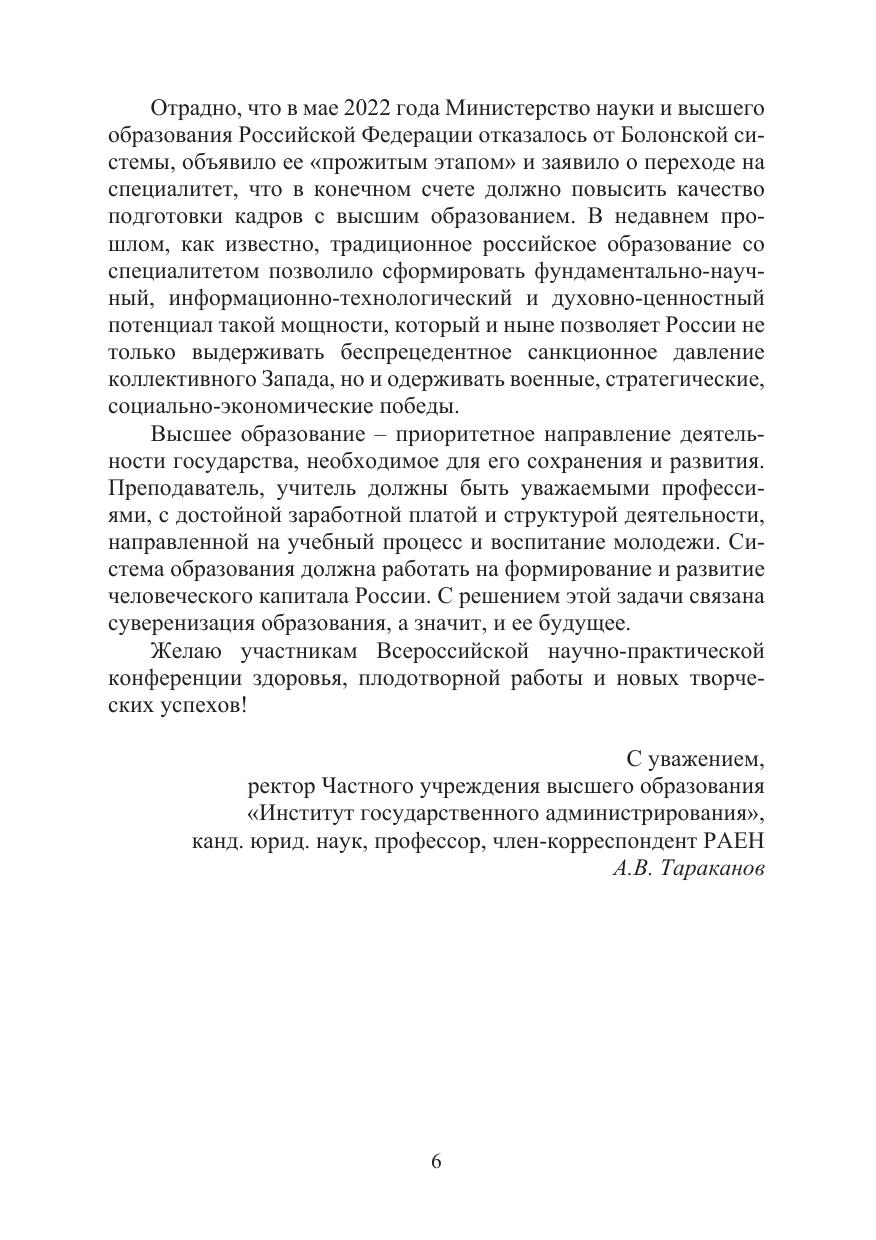 В сборнике представлены материалы Всероссийской научно-практической конференции, проведенной в мае 2022 года в Институте государственного администрирования. Рассмотрены концептуальные и прикладные аспекты гуманизации и суверенизации системы высшего образования Российской Федерации с учетом новых вызовов, обусловленных массовым переходом к применению дистанционных образовательных технологий в условиях угрозы распространения пандемии COVID-19 и отказом от Болонской системы, и перспективы научных исследований в этих областях.