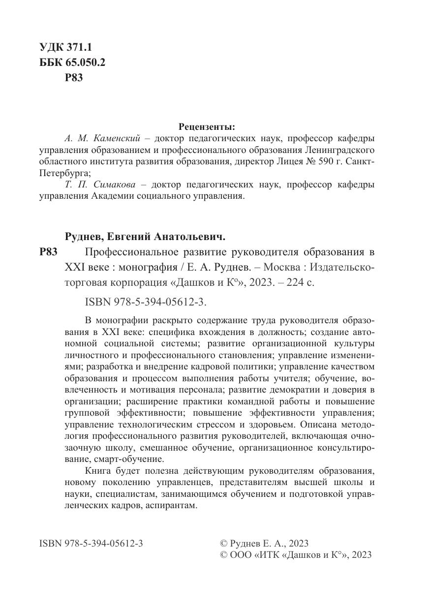 В монографии раскрыто содержание труда руководителя образования в XXI веке: специфика вхождения в должность; создание автономной социальной системы; развитие организационной культуры личностного и профессионального становления; управление изменениями; разработка и внедрение кадровой политики; управление качеством образования и процессом выполнения работы учителя; обучение, вовлеченность и мотивация персонала; развитие демократии и доверия в организации; расширение практики командной работы и повышение групповой эффективности; повышение эффективности управления; управление технологическим стрессом и здоровьем. Описана методология профес-сионального развития руководителей, включающая очно-заочную школу, смешанное обучение, организационное консультирование, смартобучение.