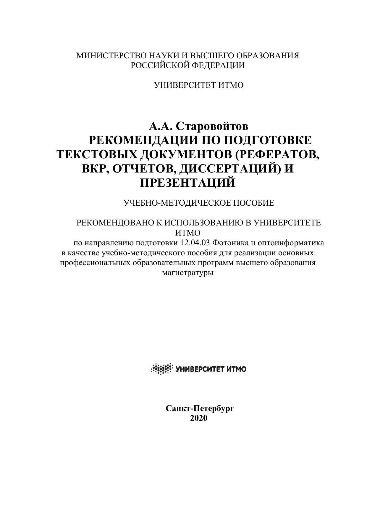 Рекомендации по подготовке текстовых документов (рефератов, ВКР, отчетов, диссертаций) и презентаций