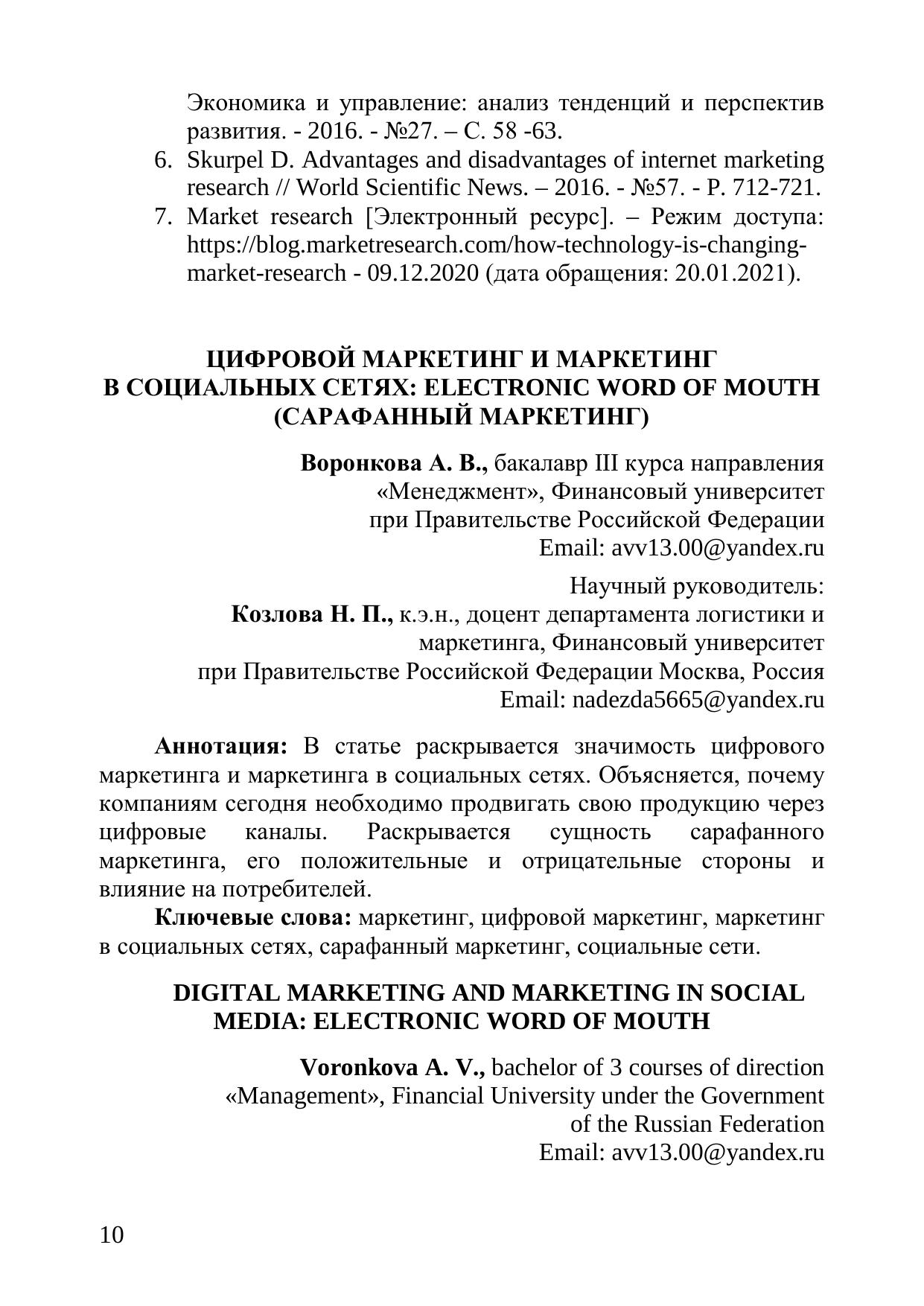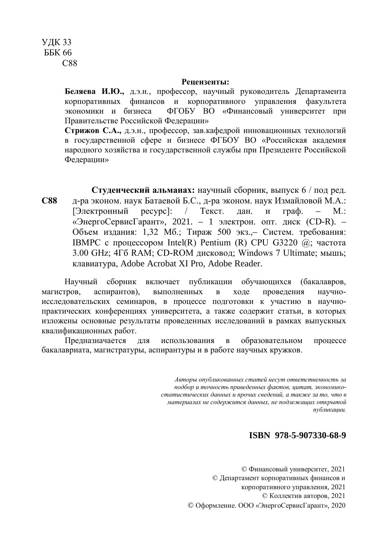 Научный сборник включает публикации обучающихся (бакалавров, магистров, аспирантов), выполненных в ходе проведения научно-исследовательских семинаров, в процессе подготовки к участию в научно-практических конференциях университета, а также содержат статьи, в которых изложены основные результаты проведенных исследований в рамках выпускных квалификационных работ.