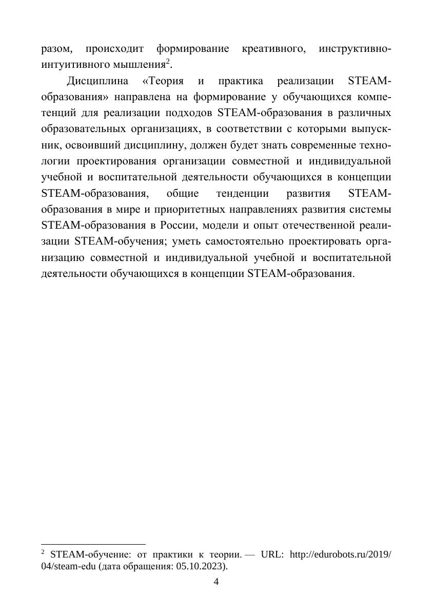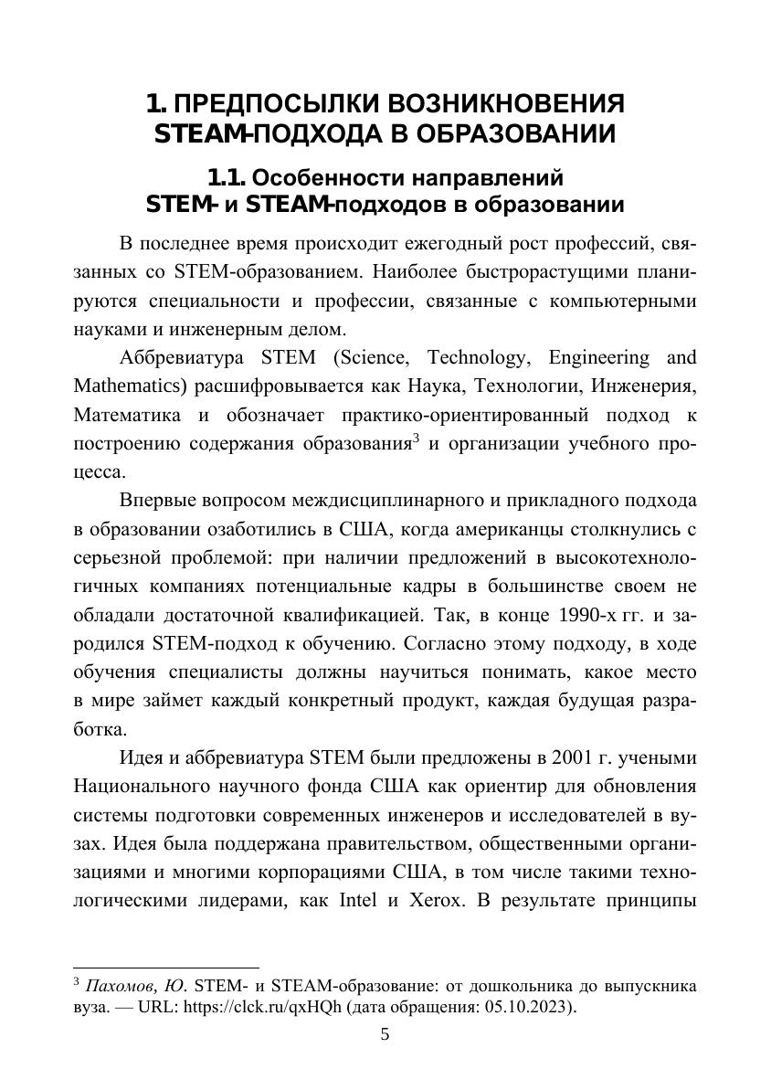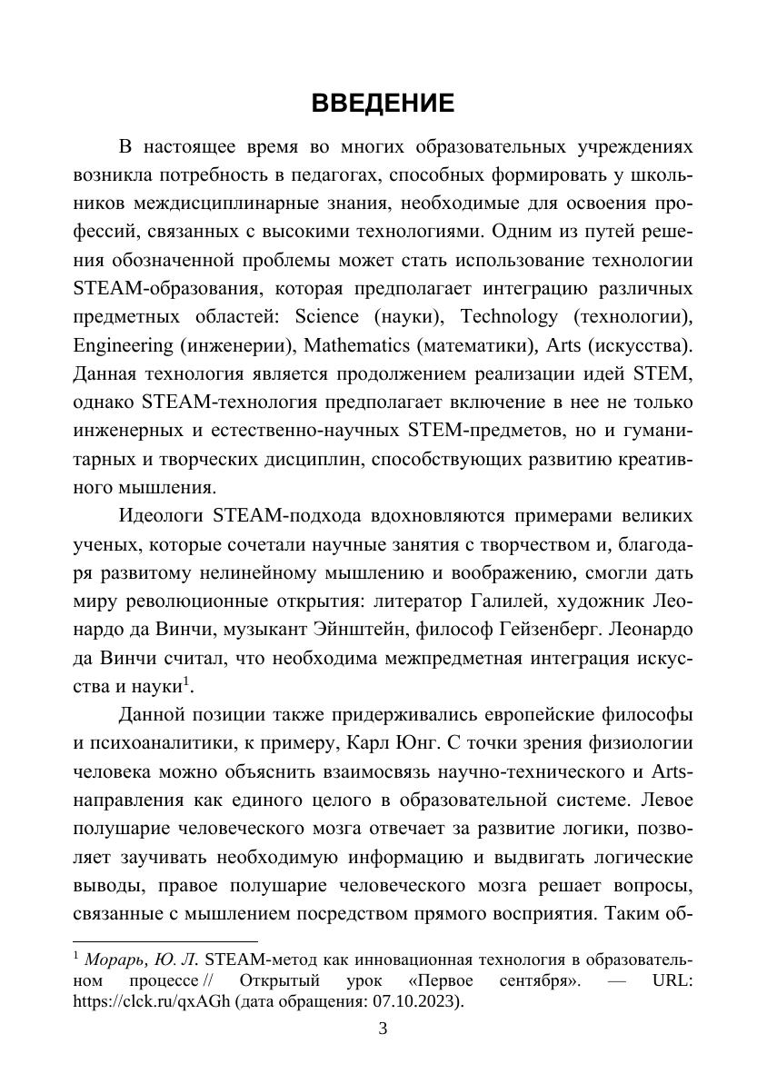 Пособие предназначено для организации самостоятельной и аудиторной работы на лекционных и практических занятиях по дисциплине «Теория и практика реализации STEAM-образования». Пособие рекомендовано для студентов магистратуры, обучающихся по направлению подготовки «Педагогическое образование», профиль «Цифровое образование», а также педагогов, интересующихся современными проблемами образования.