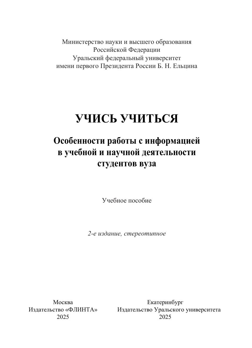 Учись учиться. Особенности работы с информацией в учебной и научной деятельности студентов вуза