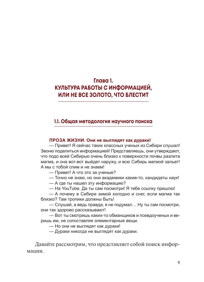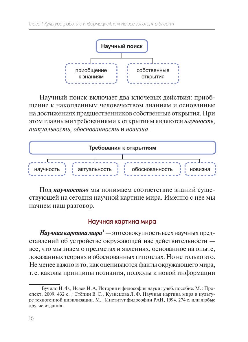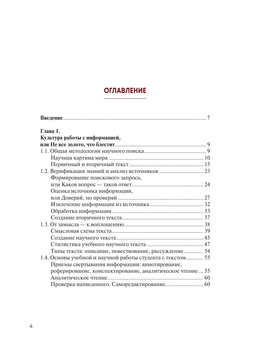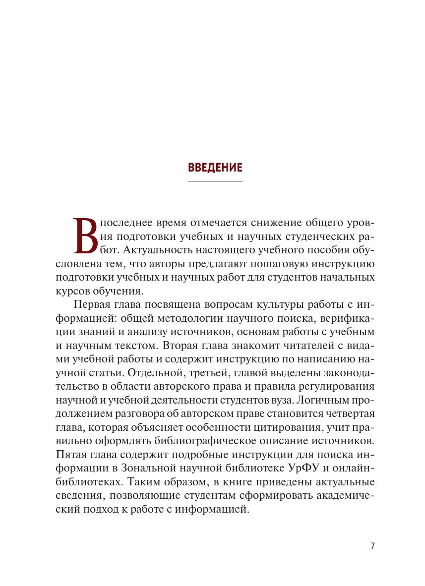 Материал пособия изложен от базовых принципов работы с информацией и способов ее отбора до ключевых навыков — основ работы с научным текстом, особенностей авторского права и работы с библиографией — и призван научить студентов начальных курсов искать, анализировать, перерабатывать полученные знания и на их основе создавать собственные.