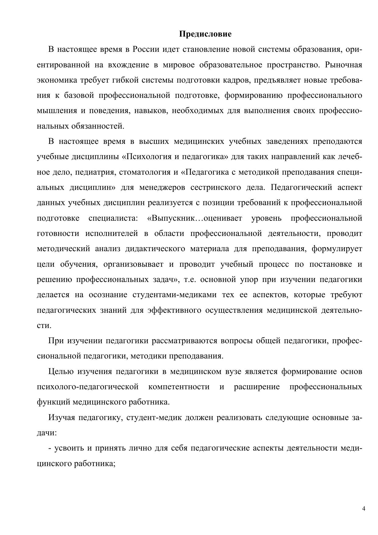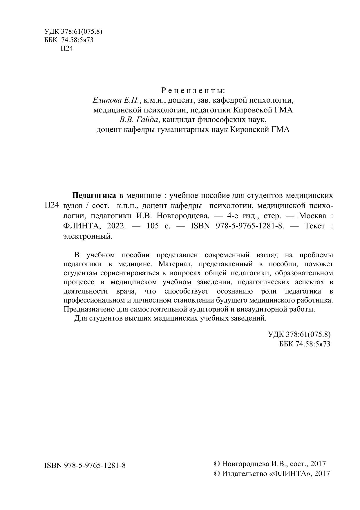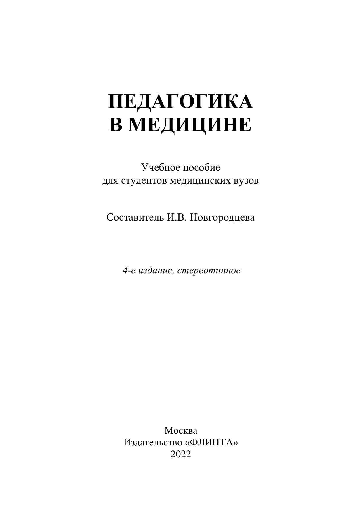 В учебном пособии представлен современный взгляд на проблемы педагогики в медицине. Материал, представленный в пособии, поможет студентам сориентироваться в вопросах общей педагогики, образовательном процессе в медицинском учебном заведении, педагогических аспектах в деятельности врача, что способствует осознанию роли педагогики в профессиональном и личностном становлении будущего медицинского работника. Предназначено для самостоятельной аудиторной и внеаудиторной работы.