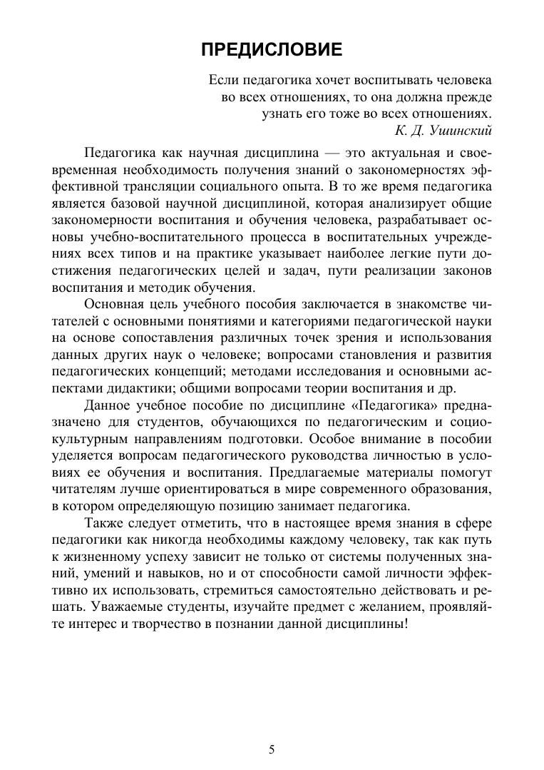 Данное учебное пособие охватывает содержание таких дисциплин, как «Педагогика» и «Педагогика и психология», которые занимают важное место в содержании гуманитарного образования. В нем изложены основные принципы общей педагогики, даны ключевые понятия по таким разделам педагогики, как дидактика, теория воспитания, педагогическая культура преподавателя. В заключение изложены основные сведения по нормативно-правовому обеспечению процесса образования. Соответствует современным требованиям Федерального государственного образовательного стандарта среднего профессионального образования и профессиональным квалификационным требованиям. Учебное пособие предназначено для студентов профессиональных образовательных организаций педагогической и социокультурной направленности, осваивающих вышеуказанные учебные дисциплины.
