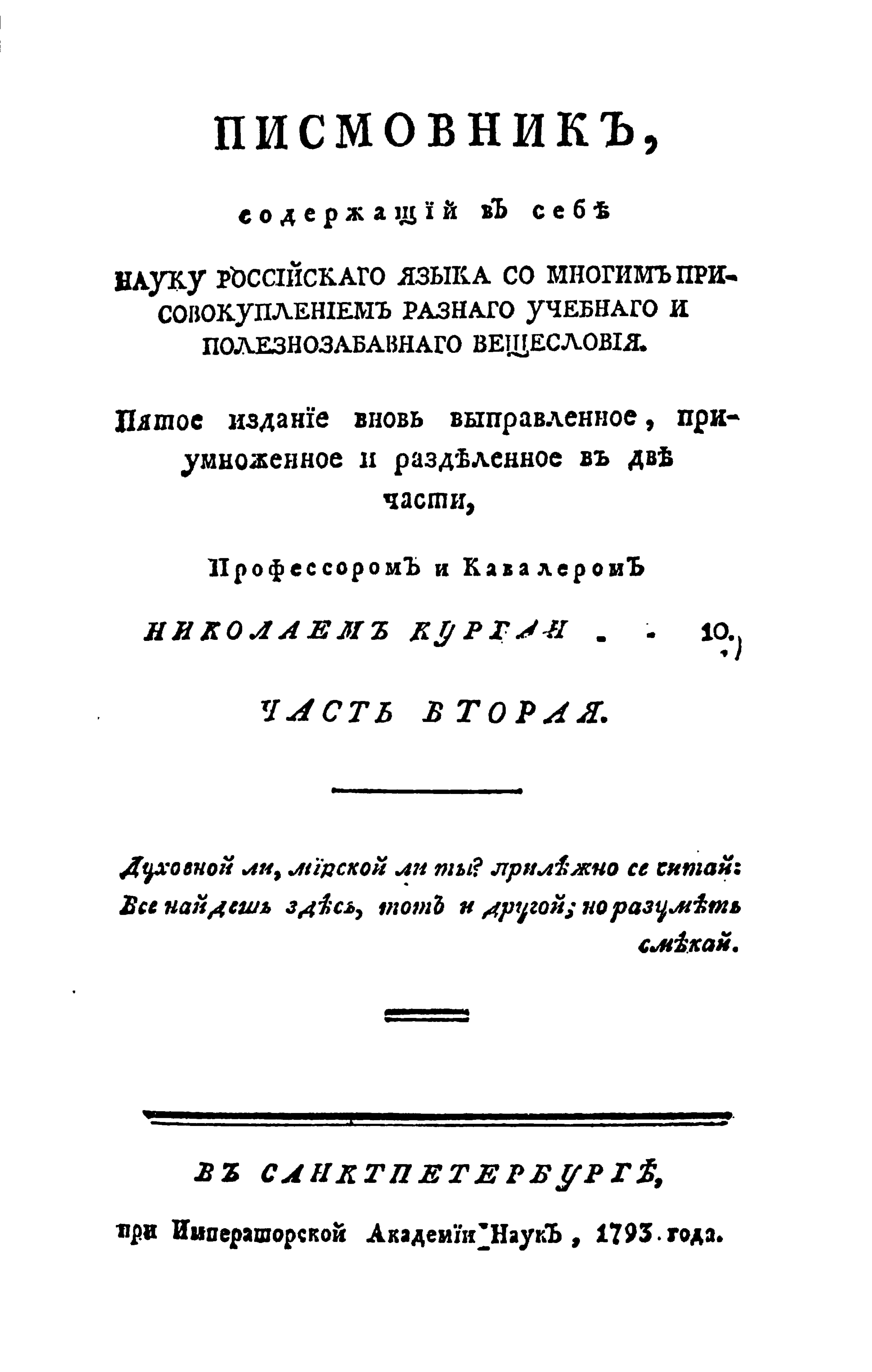 Писмовник, содержащий в себе Науку Российскаго языка со многим присовокуплением разнаго учебнаго и полезнозабавнаго вещесловия. Часть 2