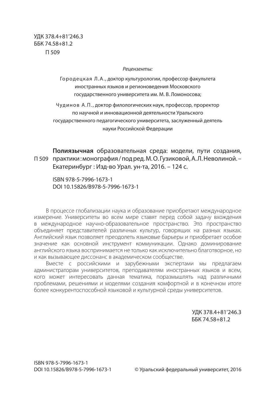 Полиязычная образовательная среда: модели, пути создания, практики: монография