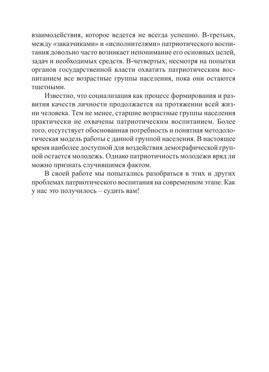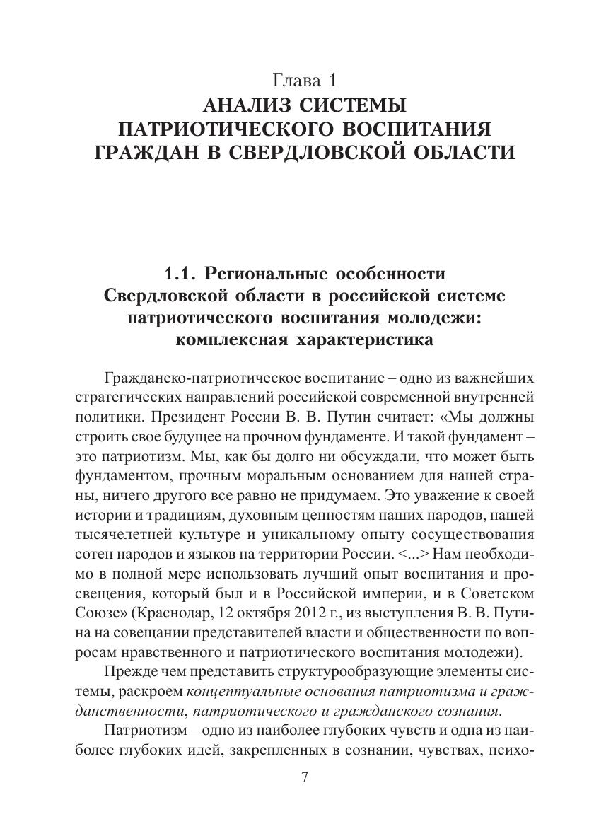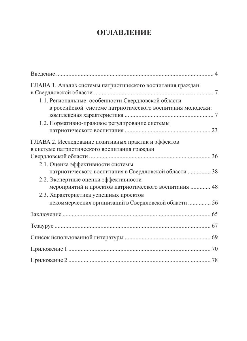 В монографии представлен анализ системы патриотического воспитания граждан Свердловской области на современном этапе. В качестве ключевой рассматривается проблема воздействия мероприятий патриотической направленности, также анализируются проблемы определения и возможные подходы к оценке их эффективности. Методом экспертного интервью выявляются наиболее успешные и распространенные практики патриотического воспитания граждан.