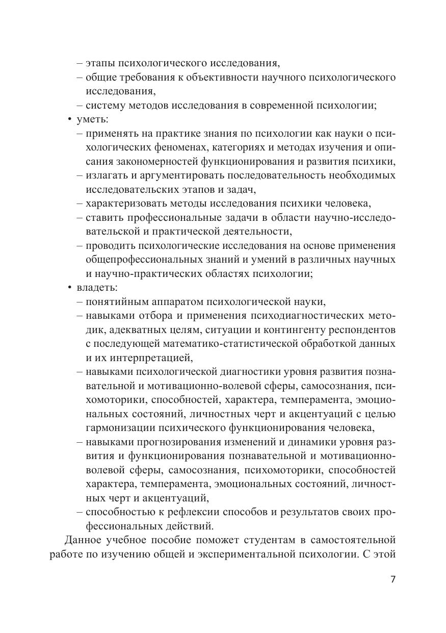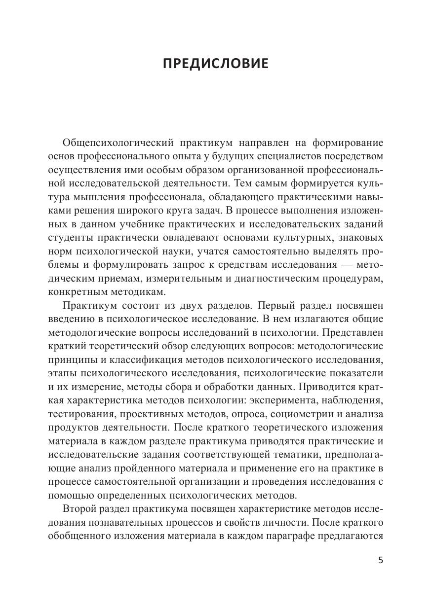 В пособии излагается система практических и исследовательских заданий, направленных на формирование целостных представлений о психологической науке, освоение конкретных исследовательских методов и методик, выработку практических навыков, необходимых для решения широкого круга прикладных задач психологии. Приведенные в пособии психодиагностические методики позволяют сформировать представления о разновидностях методов психологического исследования; планировании экспериментальных исследований; ведении, обработке и интерпретации полученных данных. Предназначено для студентов учреждений высшего образования, обучающихся по укрупненной группе специальностей, направлений подготовки 44.00.00 «Образование и педагогические науки», может быть полезно и другим специалистам — педагогам, психологам, преподавателям психологии, всем интересующимся вопросами психологии человека.