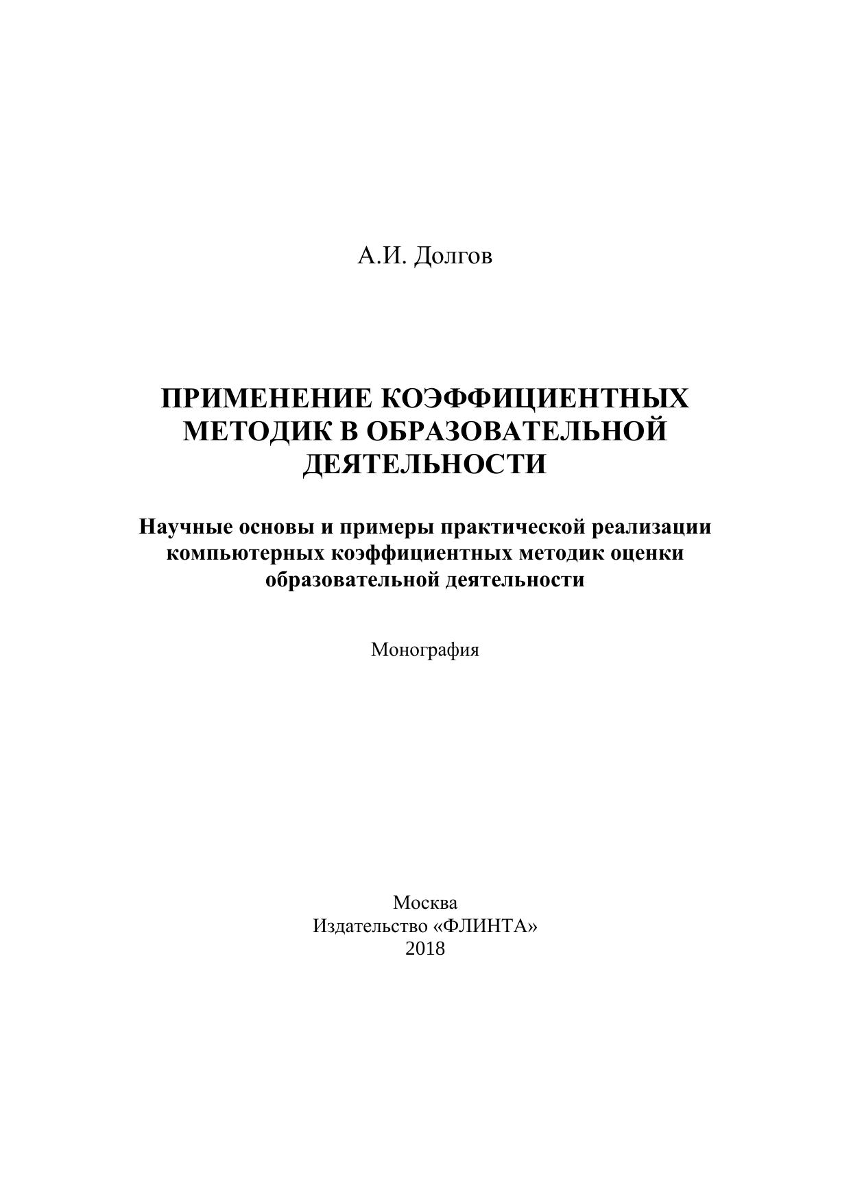 Применение коэффициентных методик в образовательной деятельности. Научные основы и примеры практической реализации компьютерных коэффициентных методик оценки образовательной деятельности