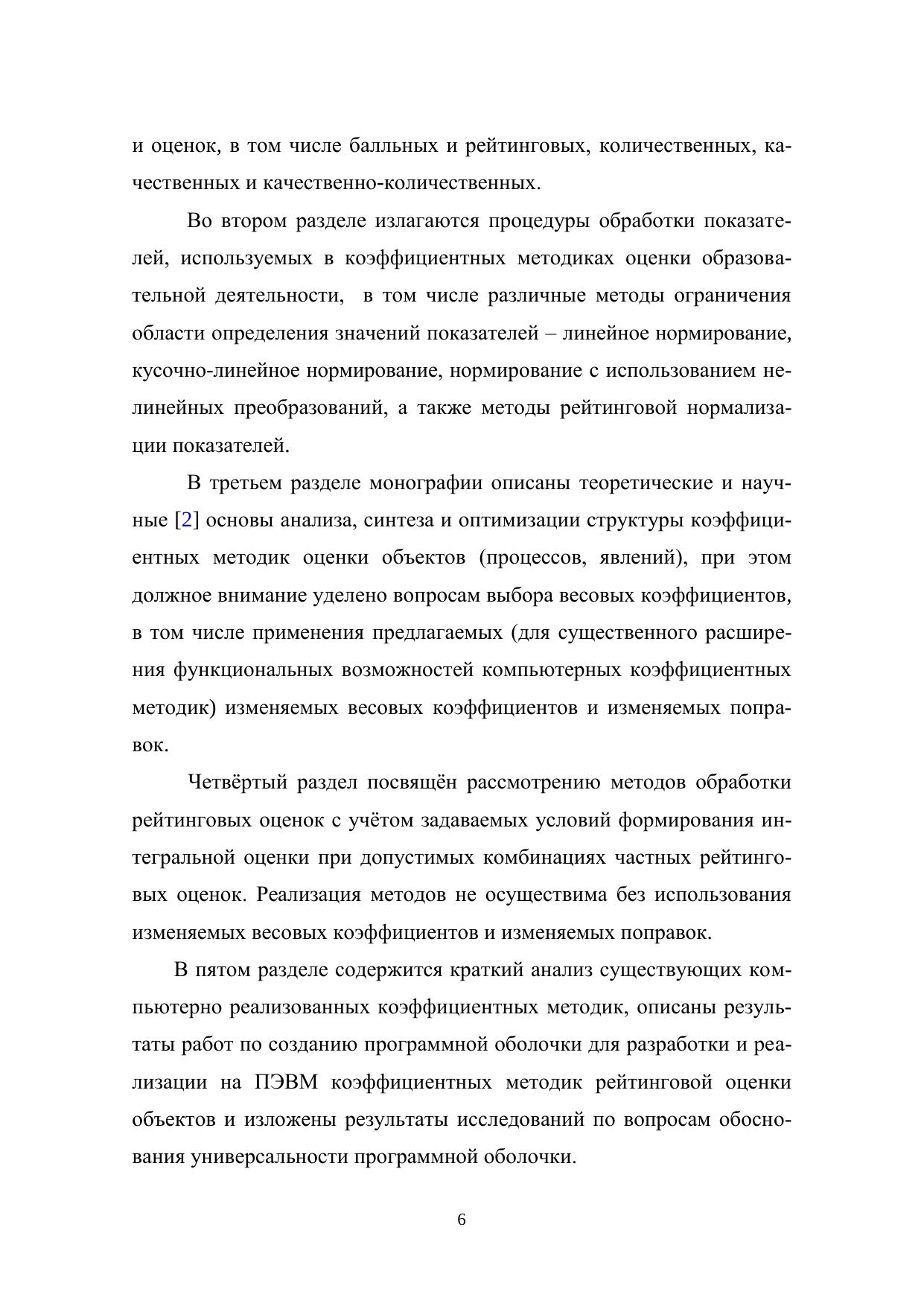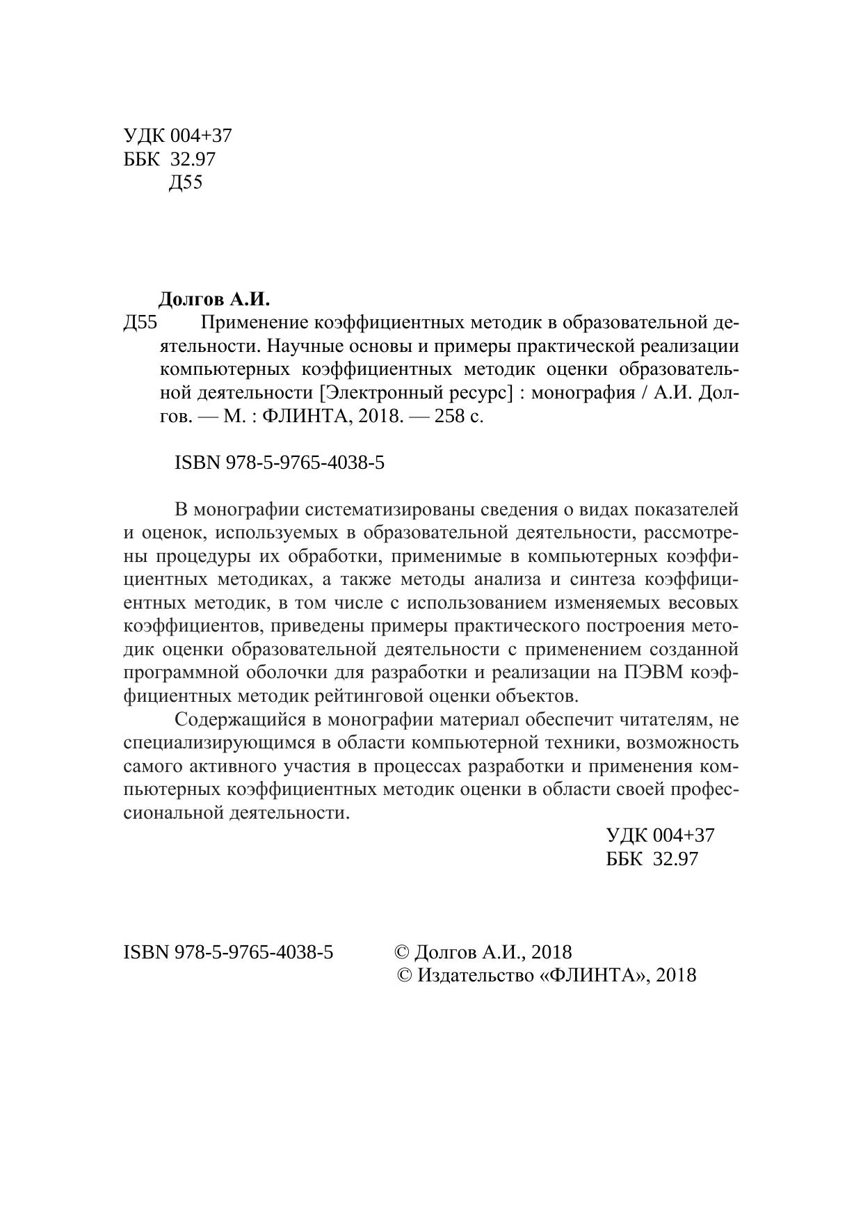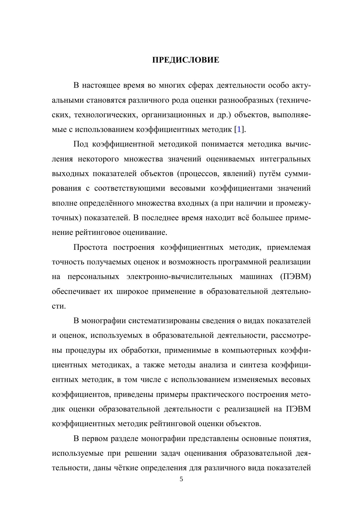 В монографии систематизированы сведения о видах показателей и оценок, используемых в образовательной деятельности, рассмотрены процедуры их обработки, применимые в компьютерных коэффициентных методиках, а также методы анализа и синтеза коэффициентных методик, в том числе с использованием изменяемых весовых коэффициентов, приведены примеры практического построения методик оценки образовательной деятельности с применением созданной программной оболочки для разработки и реализации на ПЭВМ коэффициентных методик рейтинговой оценки объектов. Содержащийся в монографии материал обеспечит читателям, не специализирующимся в области компьютерной техники, возможность