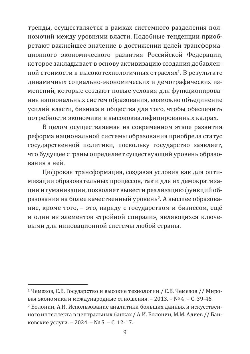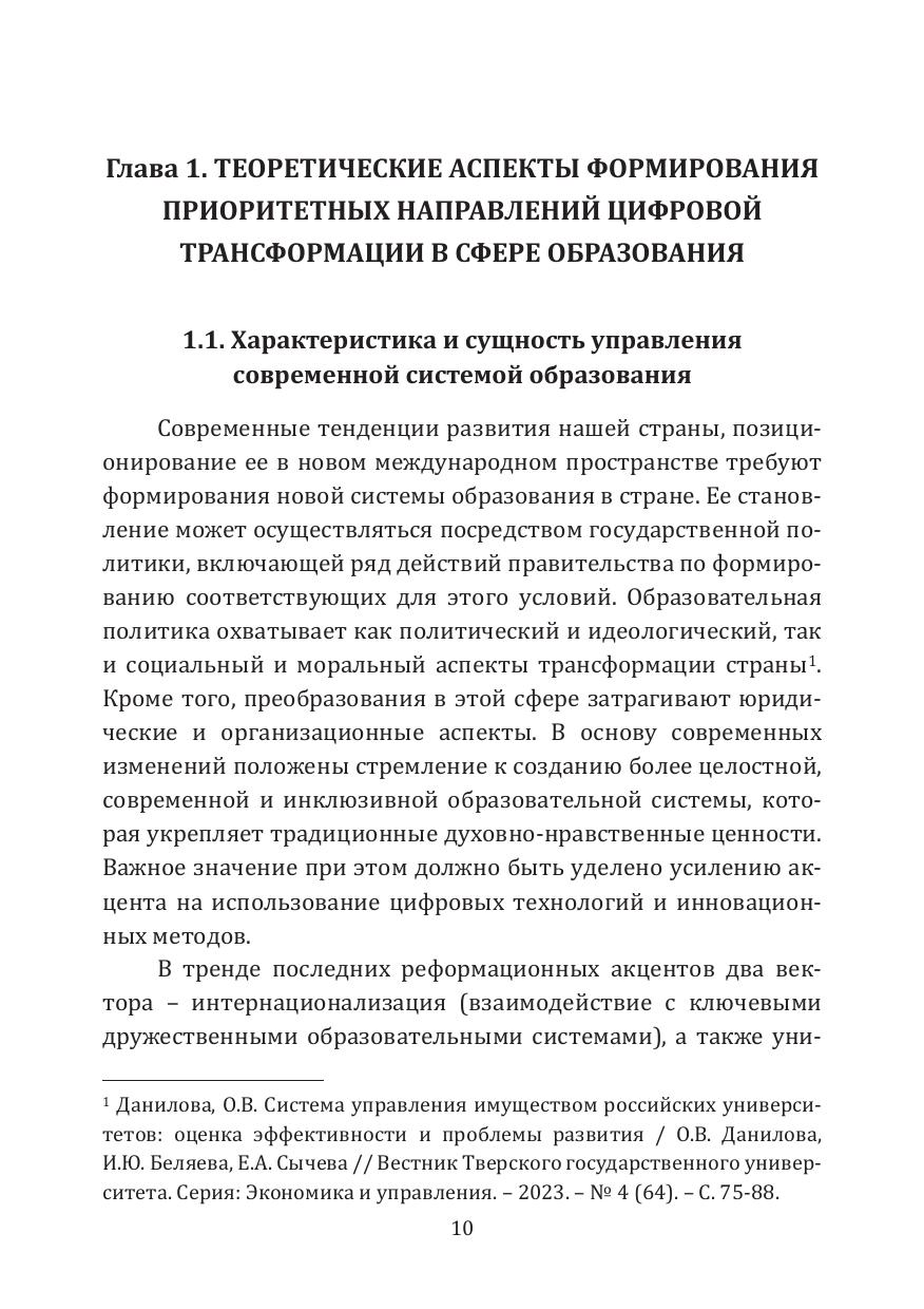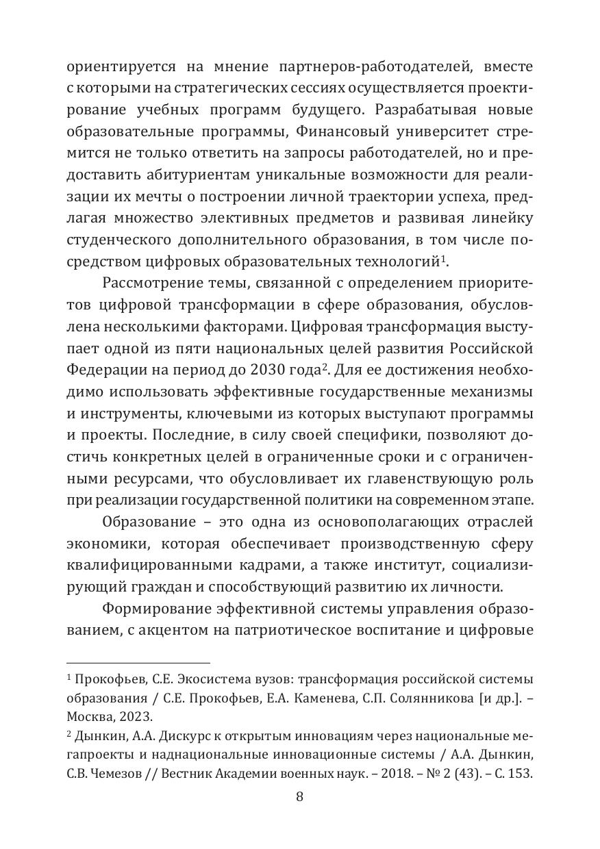 В монографии рассмотрены теоретические и практические аспекты цифровой трансформации высшего образования. Проведён анализ состояния отрасли высшего образования в контексте цифровой трансформации, в том числе дана оценка цифровым трансформационным образовательным проектам, реализуемым в Российской Федерации. Раскрыты особенности формирования основ цифровой трансформации в Институте открытого образования Финансового университета посредством открытых образовательных платформ и использования образовательных симуляторов и тренажёров. Проанализирован потенциал применения зарубежного опыта управления проектами цифровой трансформации в российской системе высшего образования. Предложены направления совершенствования управления проектами цифровой трансформации.