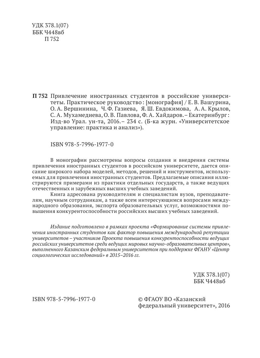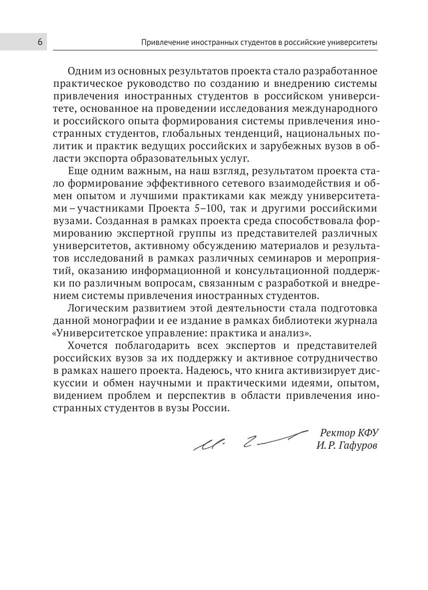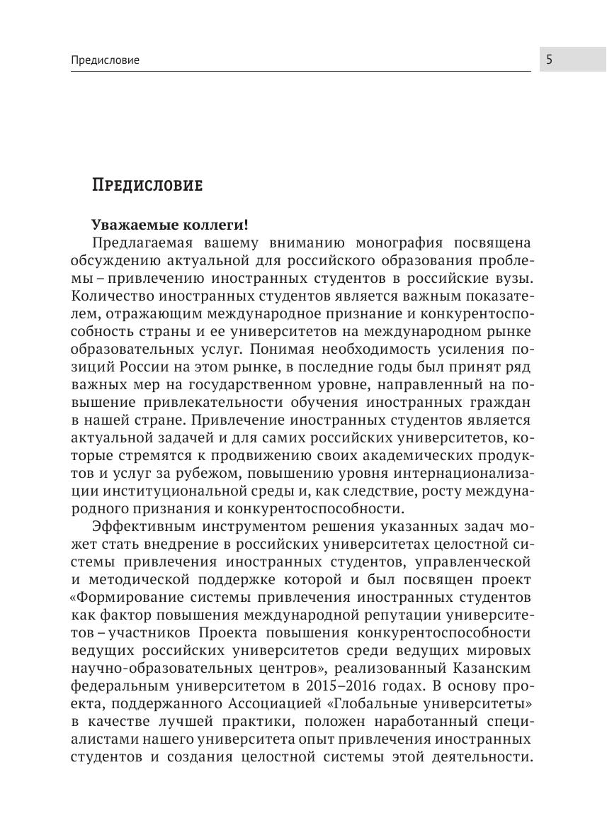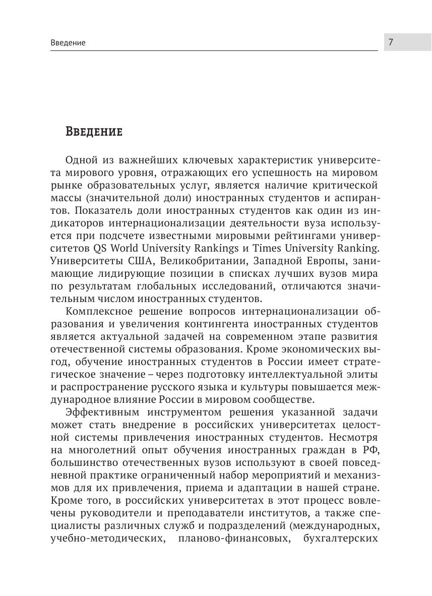 В монографии рассмотрены вопросы создания и внедрения системы привлечения иностранных студентов в российском университете, дается описание широкого набора моделей, методов, решений и инструментов, используемых для привлечения иностранных студентов. Предлагаемые описания иллюстрируются примерами из практики отдельных государств, а также ведущих отечественных и зарубежных высших учебных заведений. Книга адресована руководителям и специалистам вузов, преподавателям, научным сотрудникам, а также всем интересующимся вопросами международного образования, экспорта образовательных услуг, возможностями повышения конкурентоспособности российских высших учебных заведений.
