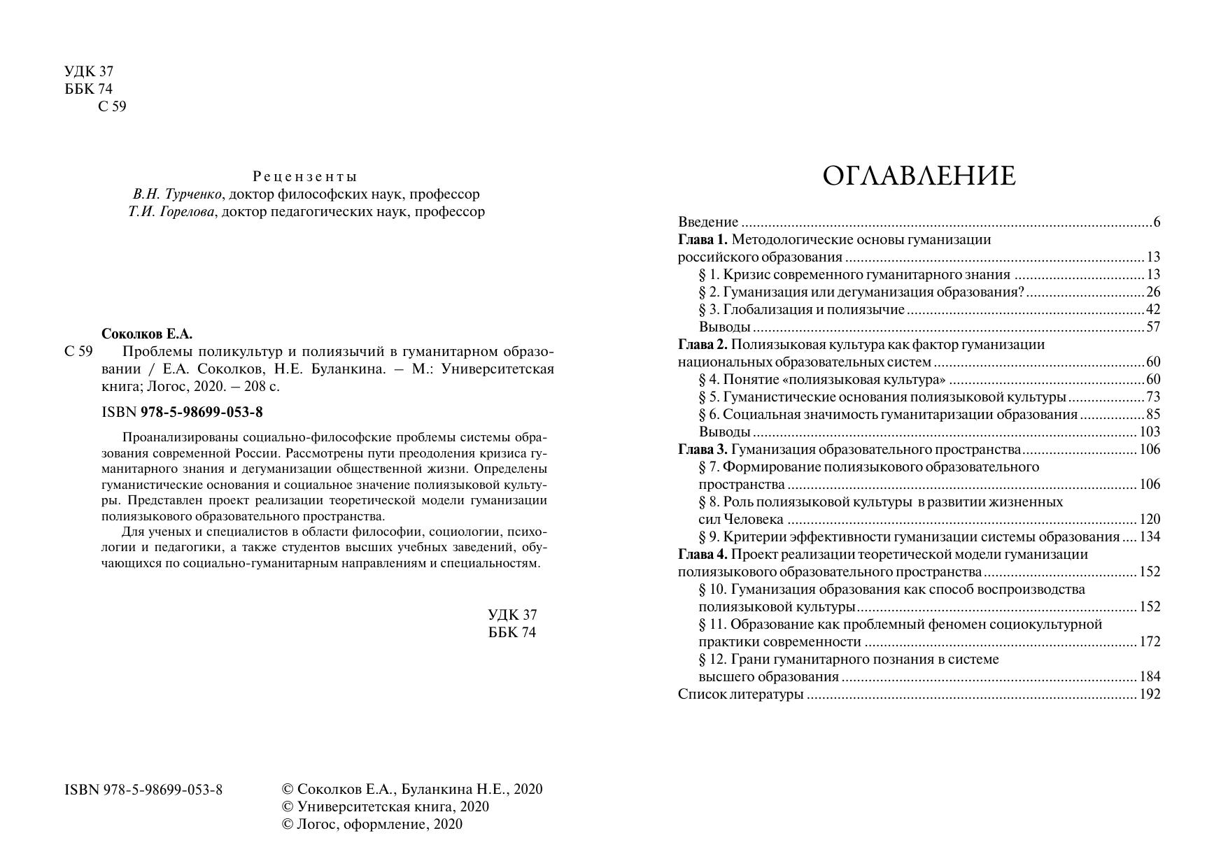 Проанализированы социально-философские проблемы системы образования современной России. Рассмотрены пути преодоления кризиса гуманитарного знания и дегуманизации общественной жизни. Определены гуманистические основания и социальное значение полиязыковой культуры. Представлен проект реализации теоретической модели гуманизации полиязыкового образовательного пространства. Для ученых и специалистов в области философии, социологии, психологии и педагогики, а также студентов высших учебных заведений, обучающихся по социально-гуманитарным направлениям и специальностям.