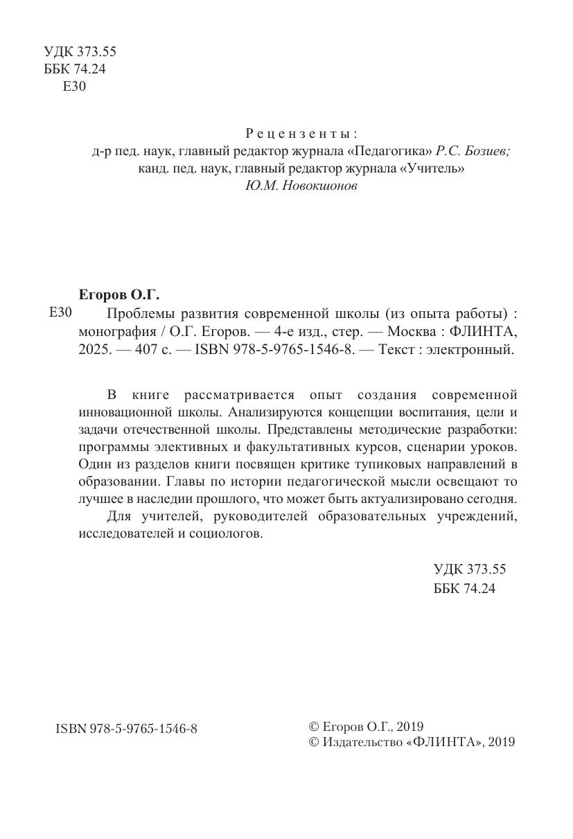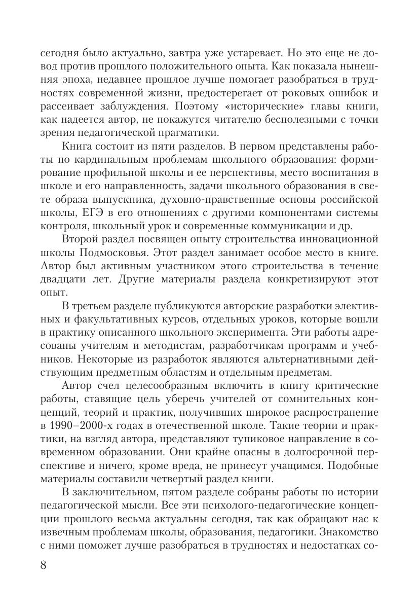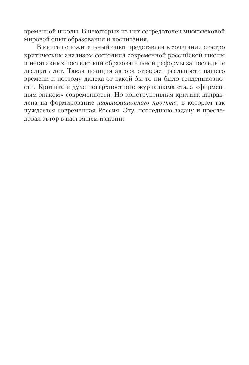 В книге рассматривается опыт создания современной инновационной школы. Анализируются концепции воспитания, цели и задачи отечественной школы. Представлены методические разработки: программы элективных и факультативных курсов, сценарии уроков. Один из разделов книги посвящен критике тупиковых направлений в образовании. Главы по истории педагогической мысли освещают то лучшее в наследии прошлого, что может быть актуализировано сегодня. Для учителей, руководителей образовательных учреждений, исследователей и социологов.